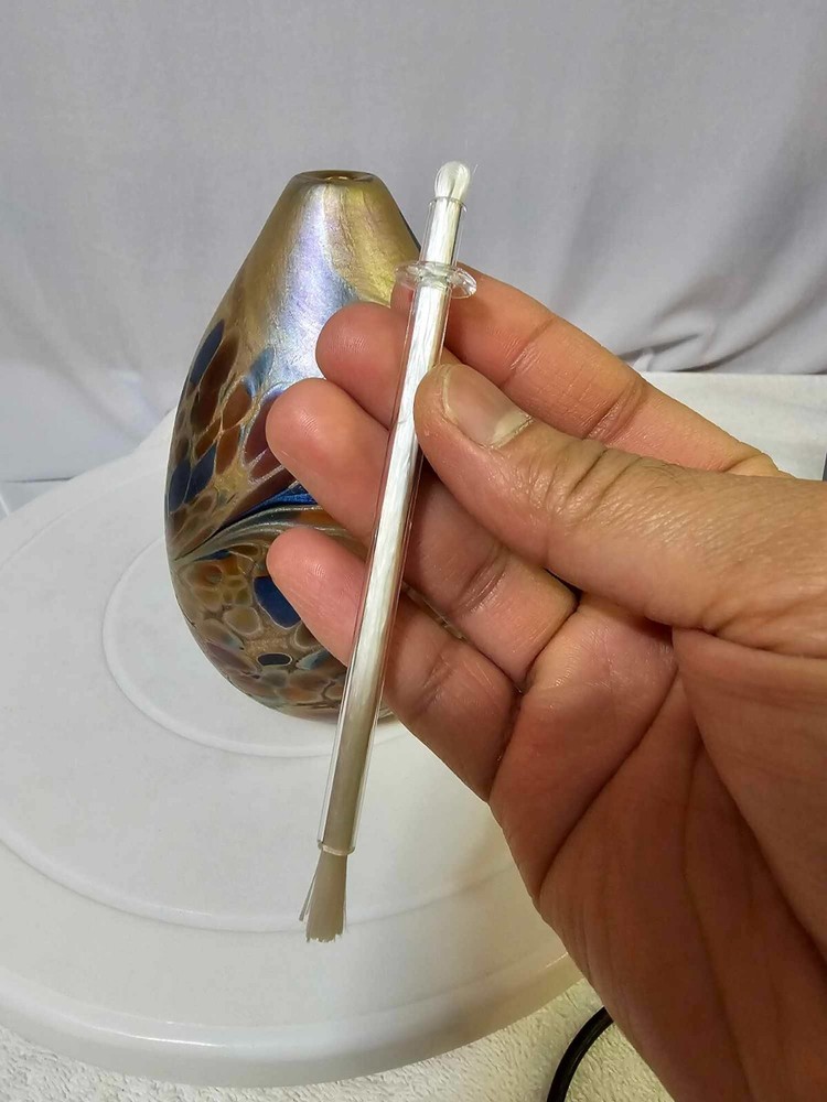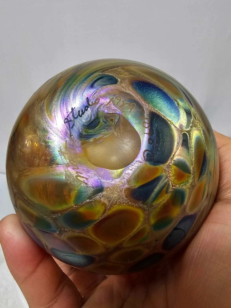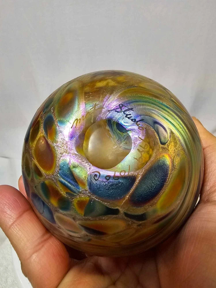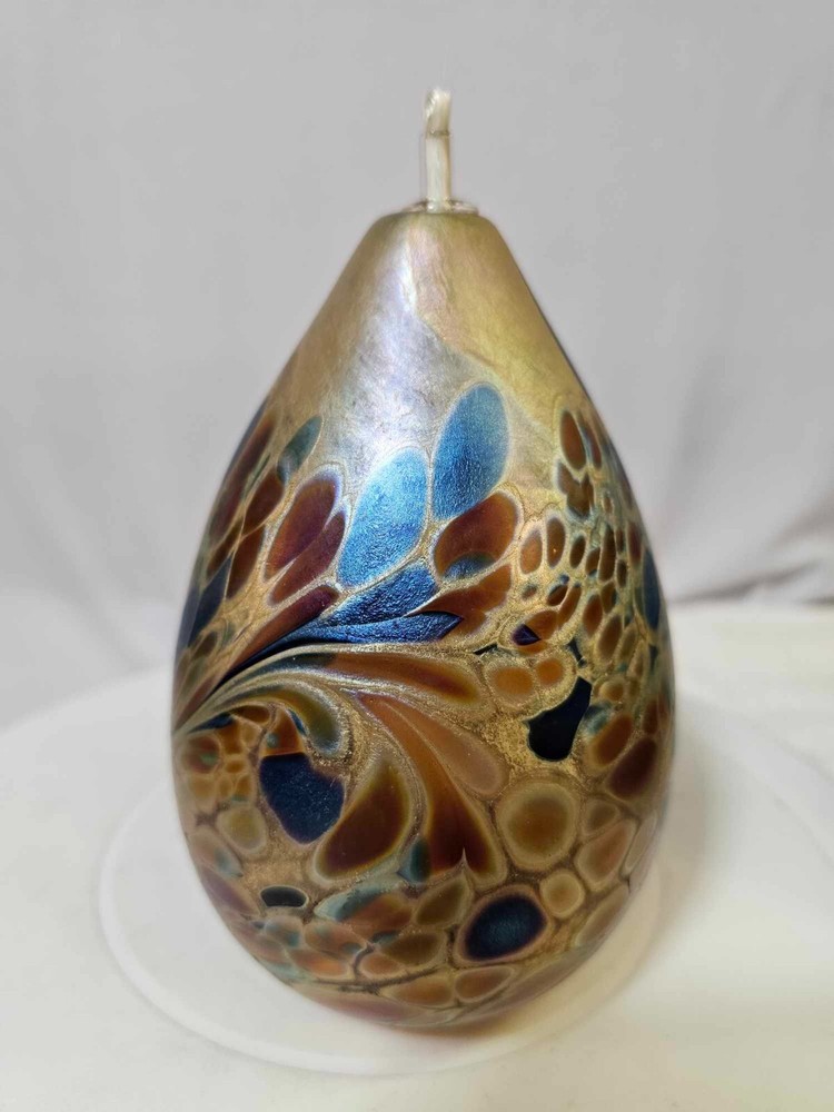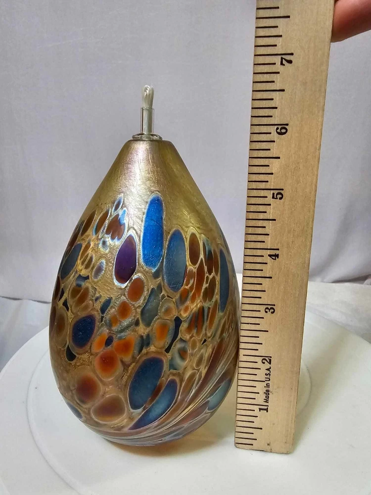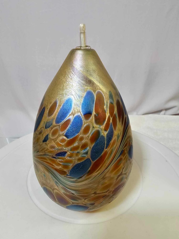 Vtg Brian Maytum Studios 1989 Irridescent Swirl Art Glass Pear Shaped Oil Lamp See photos. Thank you. Ate14