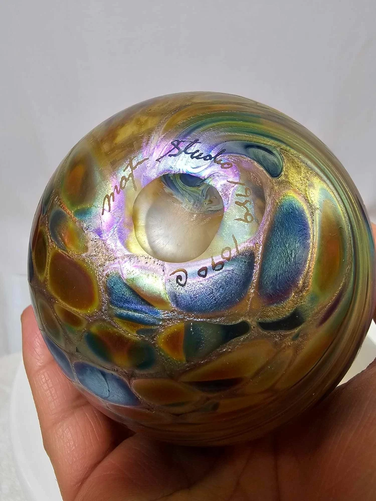 Vtg Brian Maytum Studios 1989 Irridescent Swirl Art Glass Pear Shaped Oil Lamp See photos. Thank you. Ate14...