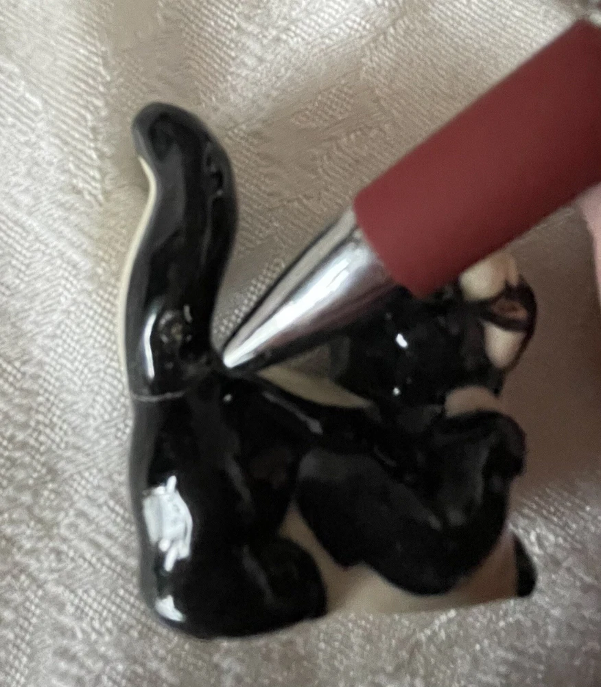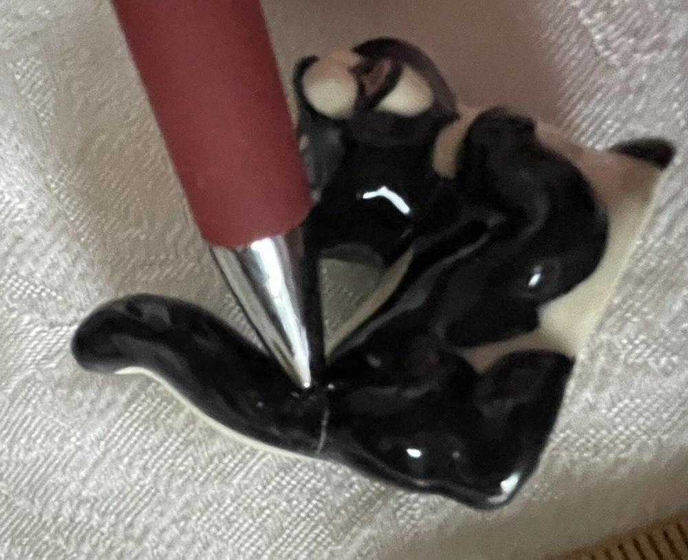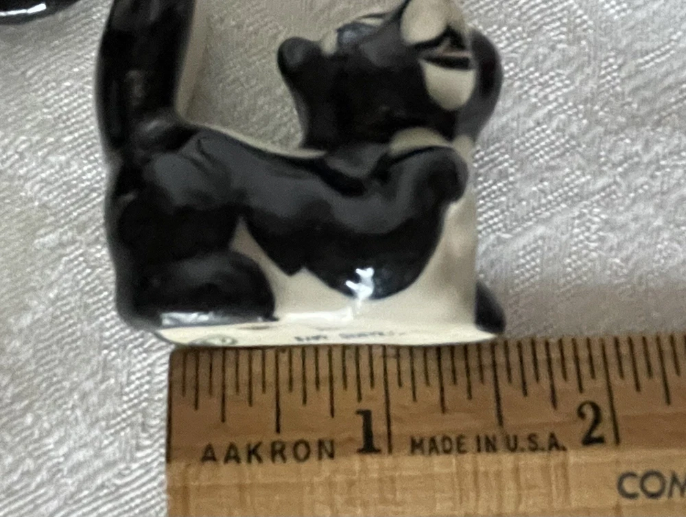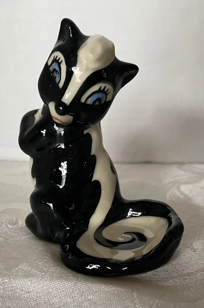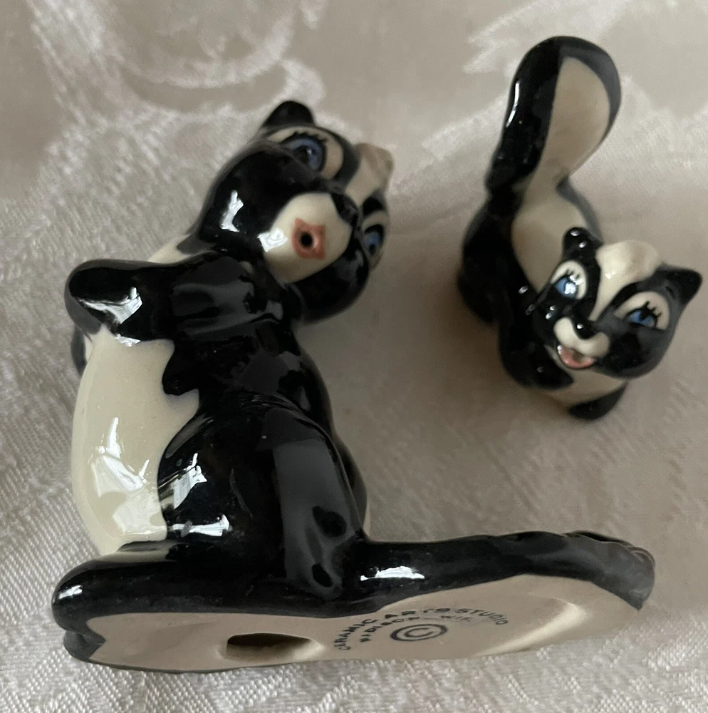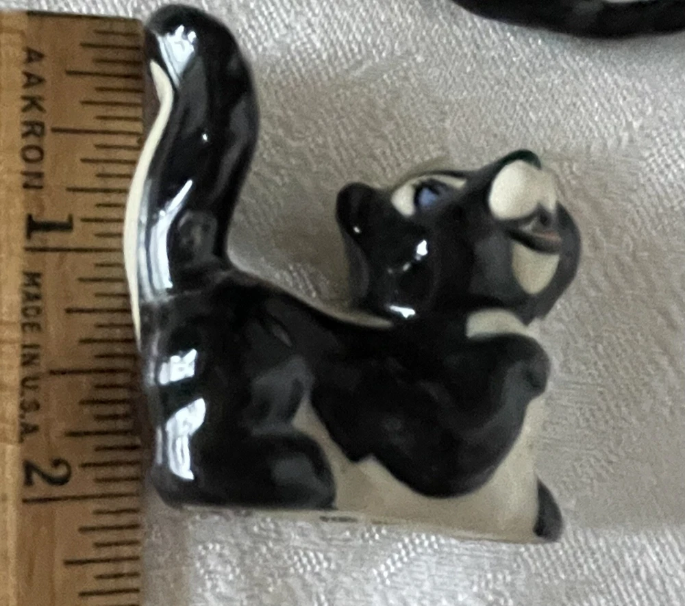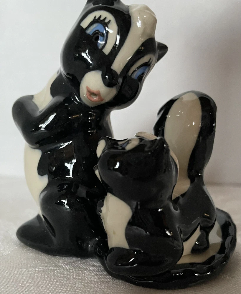 Up for your consideration ...are vintage salt and pepper shakers from Ceramic Arts Studio .. mama skunk and baby skunk … Mama skunk is 3.5” tall .. and I just noticed baby has a repaired tail . (see last two pictures). • Black and white with blue eyes and pink mouths with hole I guess for salt or pepper . Please review pictures for repair and condition . Sale is “as is “ !! // // // / // I am not an expert so I try to give a good description of what I see and as many pics as possible . Please review pictures Please ask any questions prior to bidding I will gladly combine shipping I only ship to continental USA Smoke free, environmentally controlled home All sales are final, but please contact me immediately if you have any concerns ...I strive to give great service and like good feedback . Thank you