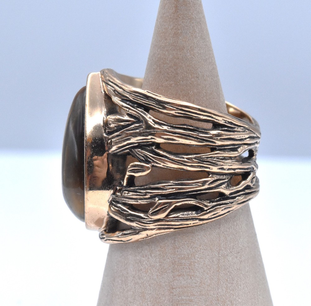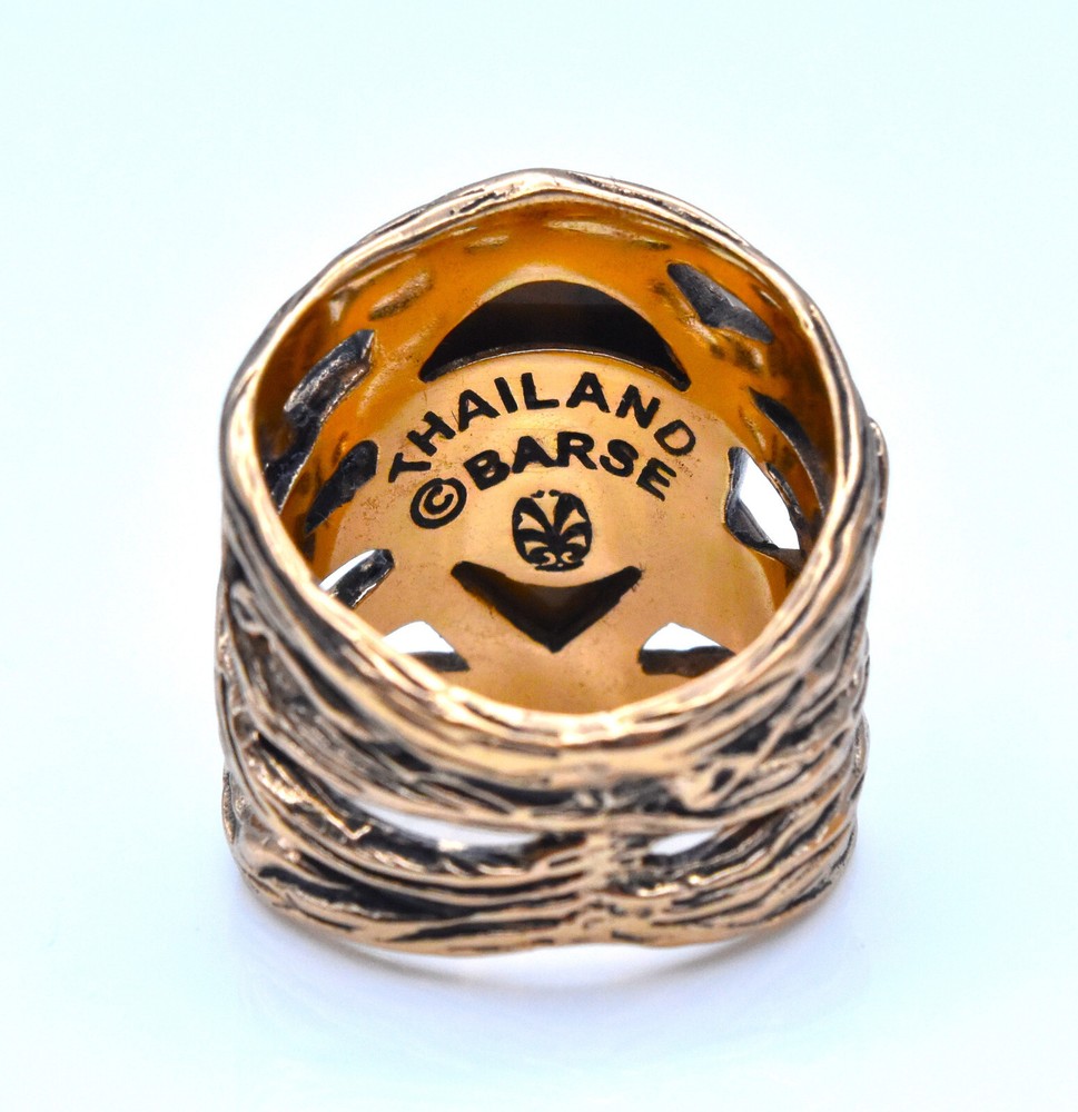 This is an absolutely STUNNING Barse ring, titled "Enchanted Teardrop". It is made of solid Bronze, and has a LARGE genuine tiger's eye teardrop shaped stone set in the face of the ring. At its widest, this ring measures approximately a full inch! This is a size 7, and I can tell you that if you're looking for a "STATEMENT" ring, look no further :)