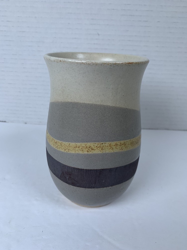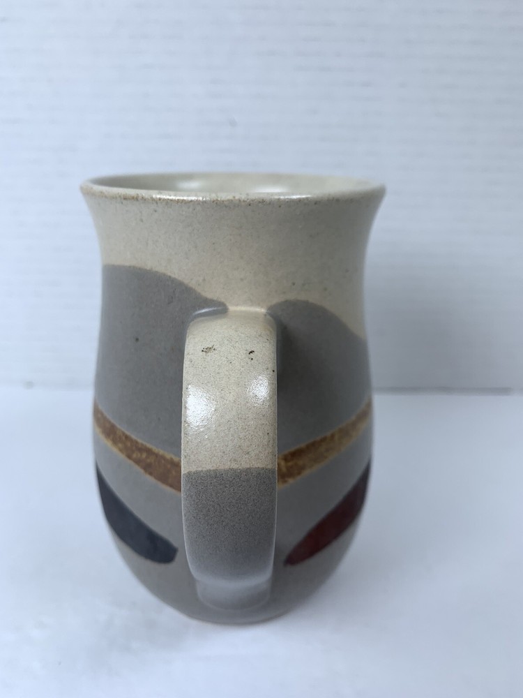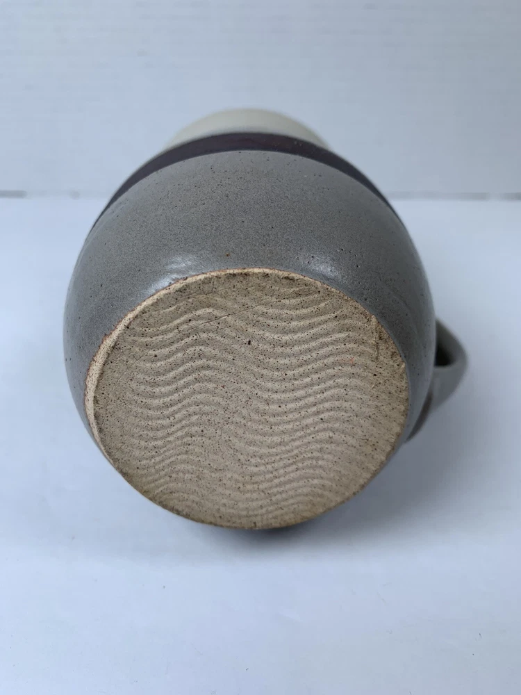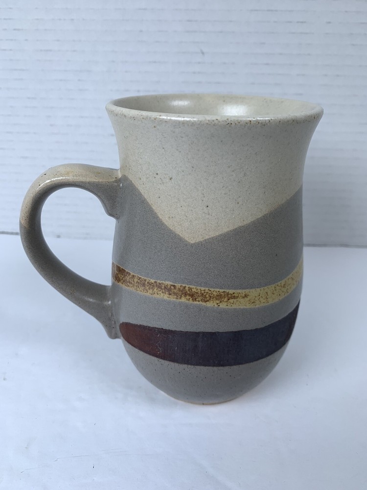 This beautifully crafted handmade ceramic mug is a perfect addition to your collection. Featuring a stunning wave pattern in earth tones, this cylinder-shaped mug stands at 5.25 inches tall and has a diameter of 3.25 inches. The mug is suitable for hot beverages and has a sturdy handle for easy use. The arts and craft style of this mug makes it a great gift for any occasion and an excellent addition to your American-themed décor. The mug is machine washable and has a matte finish. This original art pottery production technique was done in the United States and is stamped with an impressed bottom design. Add this unique and decorative glazed pottery mug to your collection today!