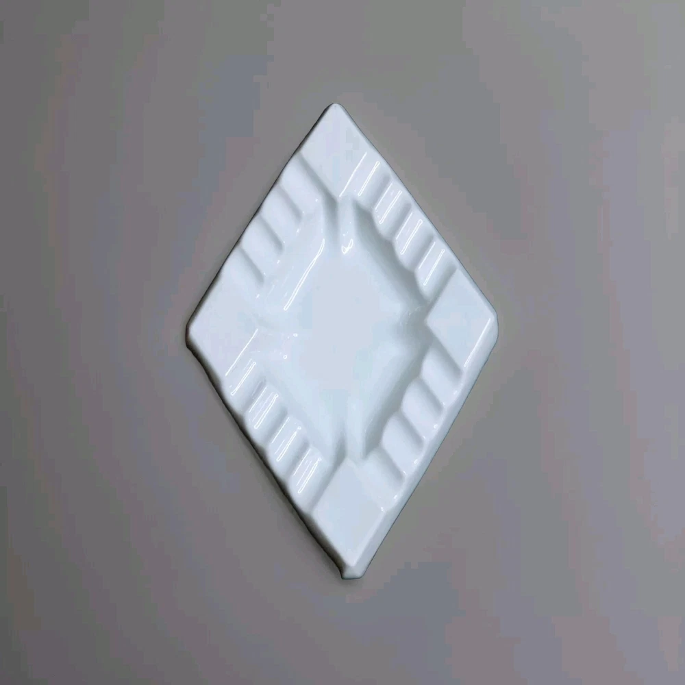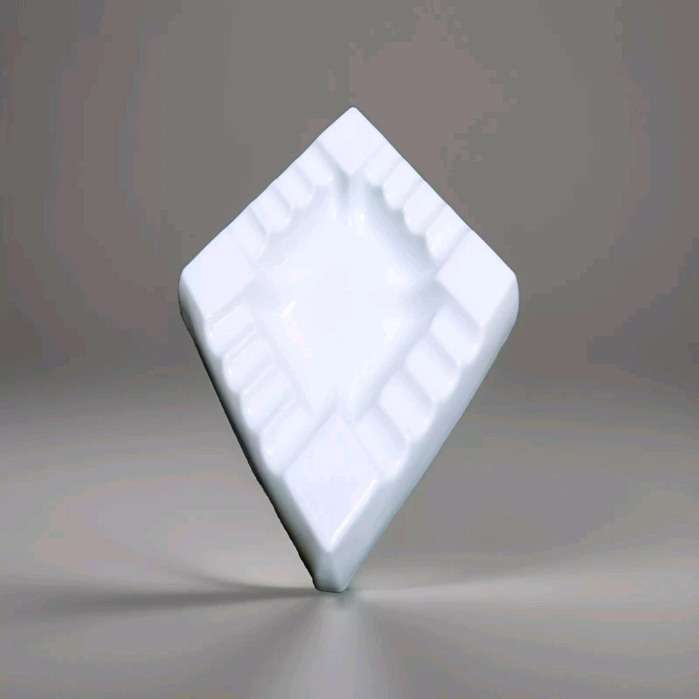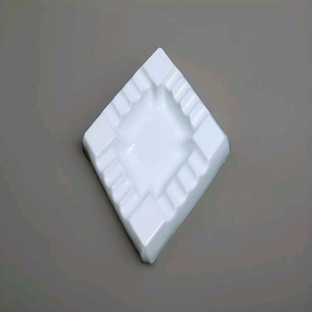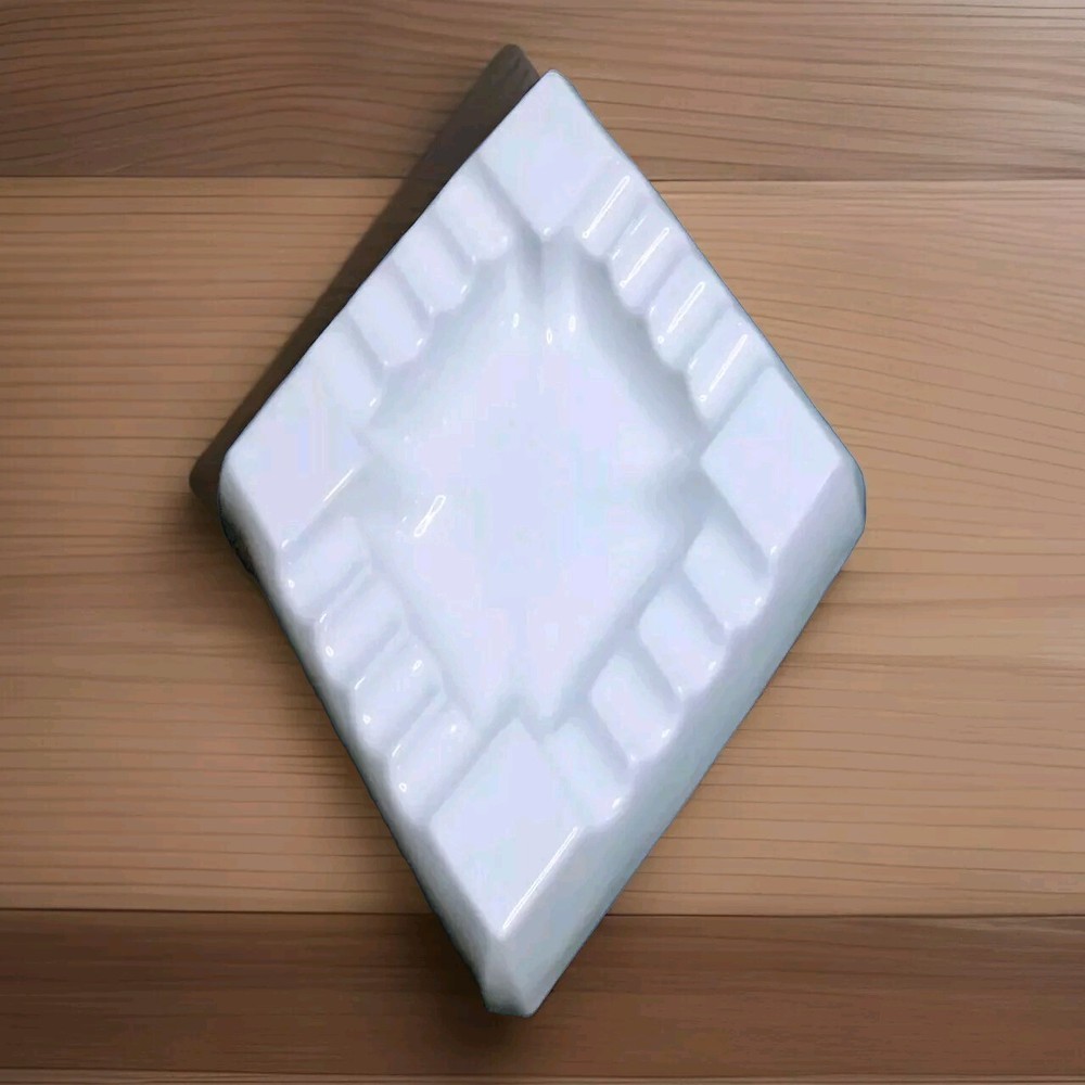 This vintage mid-century modern ashtray is a unique piece that will add character to any collection. The diamond-shaped ceramic material is beautifully crafted with a glossy finish. Measuring 11.5 inches in diameter and 7.5 inches in length, this ashtray is perfect for any smoking enthusiast. The unmarked brand and original model number 510 make it a rare find for collectors. Handmade in the United States during the 1950s using the studio crafted production technique, this ashtray is a true work of art. The theme of houses and architecture is beautifully captured in the design. An impressed backstamp adds to the authenticity of this piece. Please note that photos are a part of the description and the best indication of the condition of an item. If you have ANY questions please ask them PRIOR to purchasing the item. NO RETURNS! SOLD AS IS! Thanks for looking!!