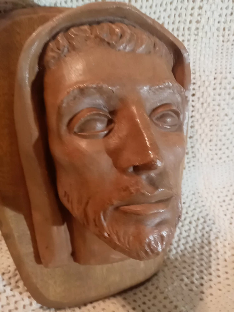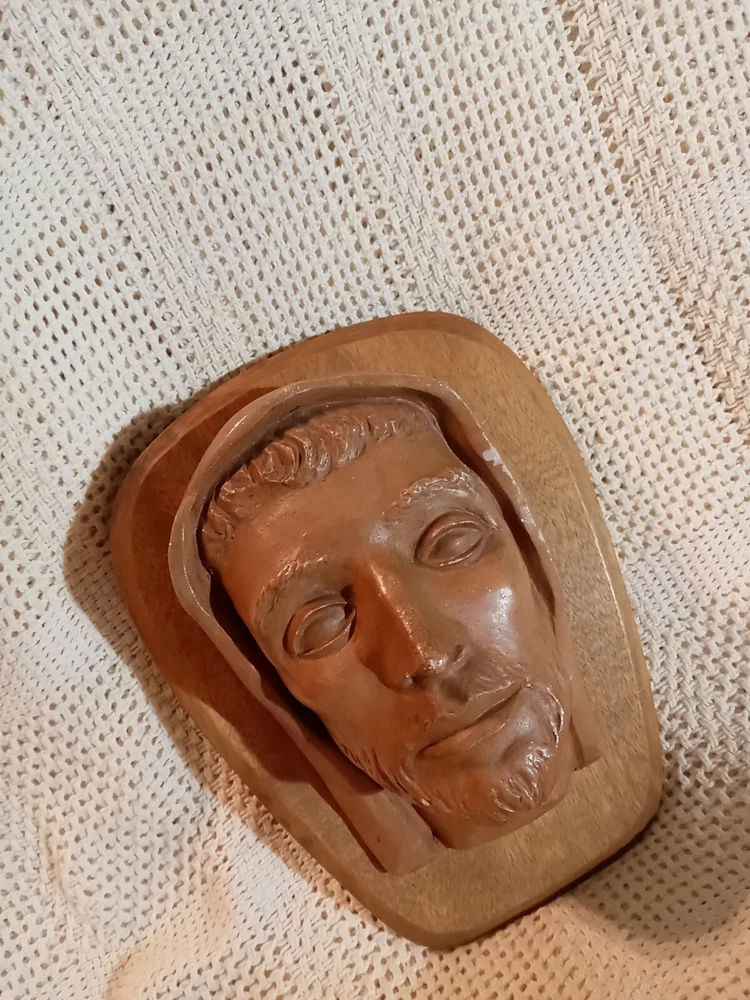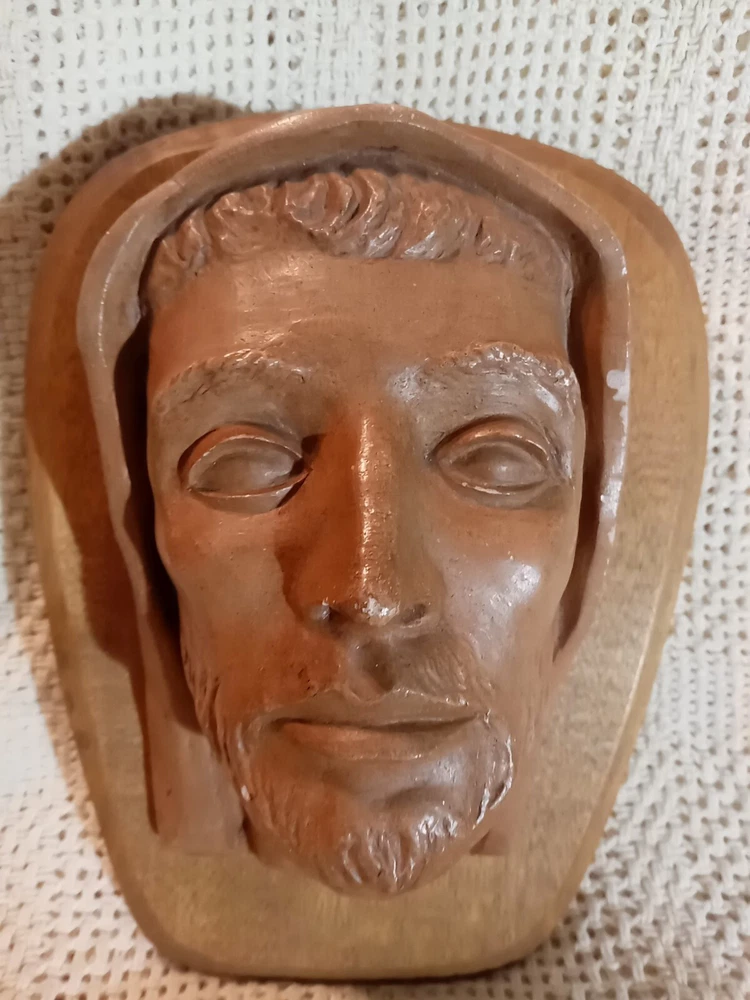 🤎🧡Marvelous, amazing unique sculpted Ceramic head face on a carved wooden base plaque of Saint Francis of Assisi. 😲🤗This exquisite wooden plaque features a stunning ceramic sculpture of St. Francis of Assisi in a beautiful all-over pattern. **It was made by Maranatha Liturgical Art Studios in United States in 1960s. ***Measuring 10 inches in length and 7.75 inches in width, this medium-sized plaque is perfect for wall mounting in any room of your home🏃🏻♂️🏃🏻♀️🏃🏻♂️. ***Crafted by the renowned liturgical Art studios, this unique and hand-crafted piece is made from high-quality wood and ceramic materials, and boasts a matte finish. 🎁Its vintage design and decorative style make it a perfect addition to any art-themed collection. Personalize this plaque to your liking, as it is perfect for both teens and adults alike. Just amazing🏃🏻♀️🏃🏻♂️ ***Great condition. Some edge wear. ➡️Please see the photos for details. **Missing the sticker on the back. Ask please through eBay AND Thanks for your interest