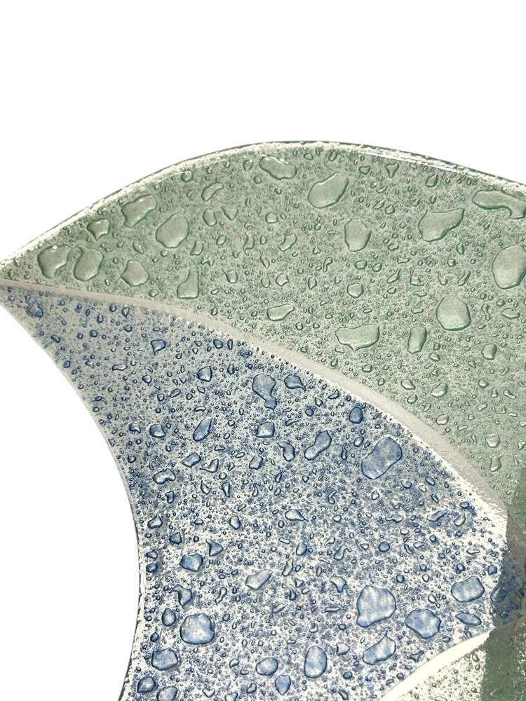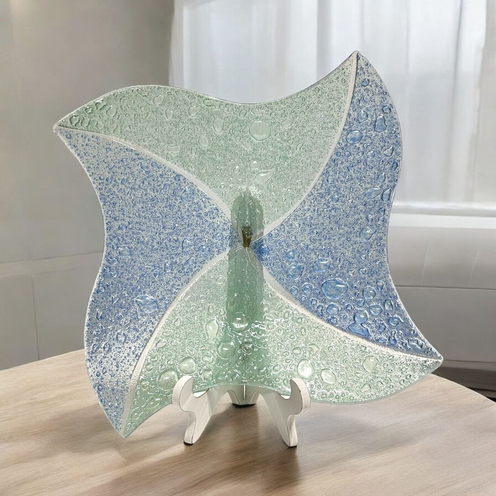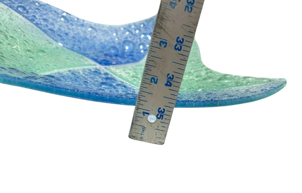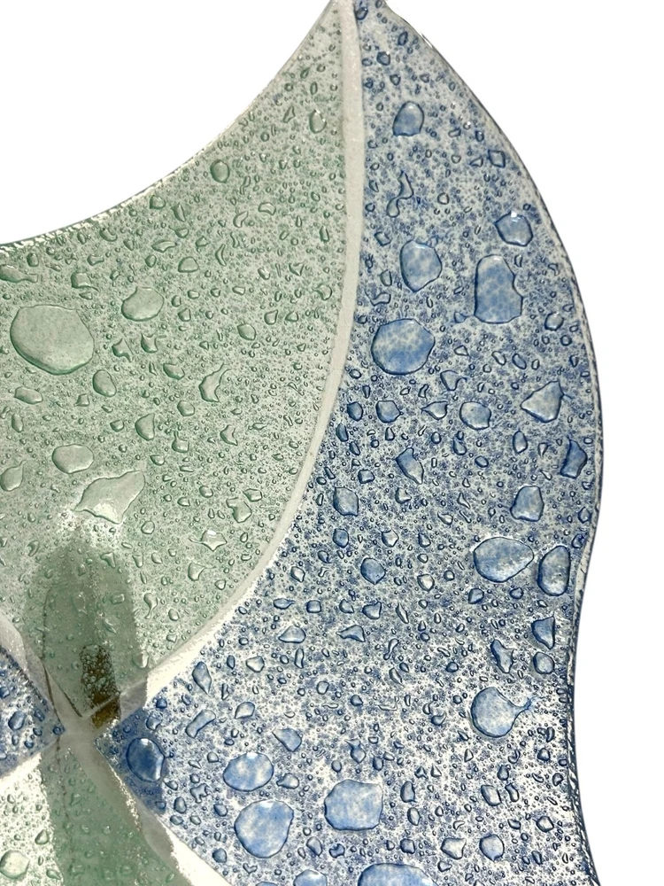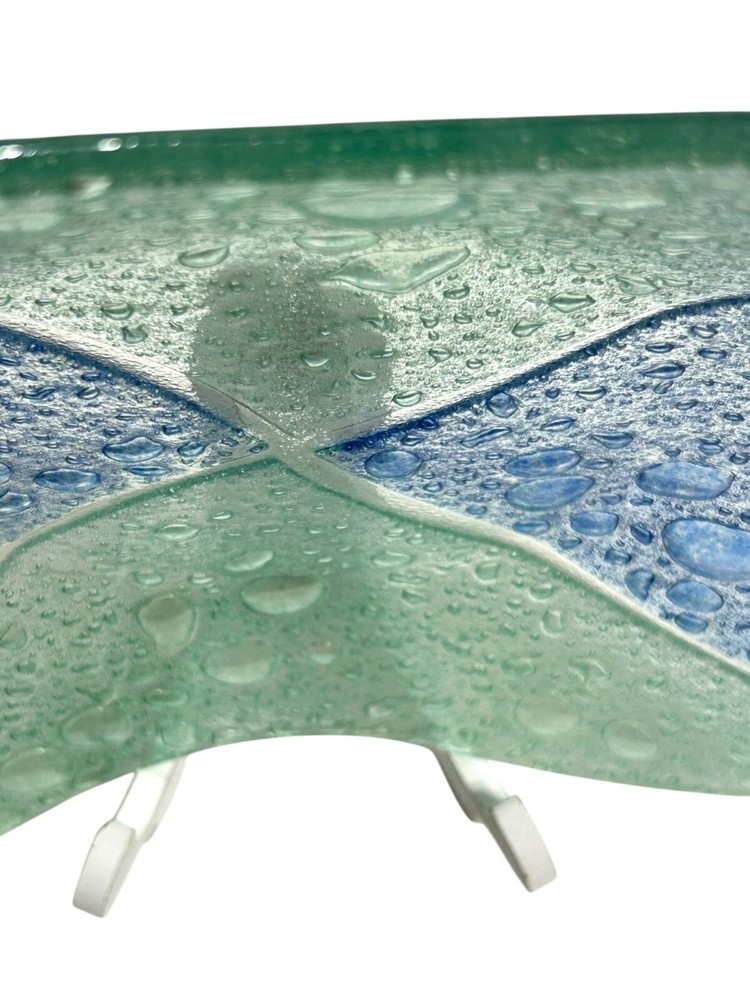 This exquisite glass tray exhibits a beautiful blend of blue and green hues with a textured controlled bubble surface. The elegant design is both functional and decorative, making it an excellent addition to any space. Shaped like a star, this piece showcases craftsmanship and style. • Controlled Bubbled glass • Star Shaped • Textured blue & green design • Can be used as plate/tray/large shallow bowl • Elegant and stylish decor piece 1 inch deep, 11.25 inch wide, corner to opposite corner is 15.5 inches Please read to the end. Condition : Pre-owned, excellent. Please zoom in to pictures for details of condition. Pictures are part of the detailed description Allergy warning : Comes from a smoke free home but not a pet free home. For clothing : Please see measurements in pics and compare to clothing that currently fits you. We offer 30 day buyer paid returns no questions asked. The item must be returned in the same condition that it left here. Tags or original packaging of new products must not be altered. Shipping both ways in these cases will be at buyers expense. Refund will be issued upon receiving the item. If your item is damaged in shipping or you received the wrong item and/or it was not as described in the listing, please contact us as soon as you receive the package. Will will make it rught. Please feel free to ask any questions before purchase! Shipping : Friday-Sunday purchases ship Monday Monday-Tuesday purchases ship Wednesday Wednesday-Thursday purchases ship Friday Thanks for looking! Lolli’s recycle Hub