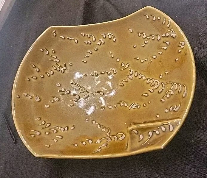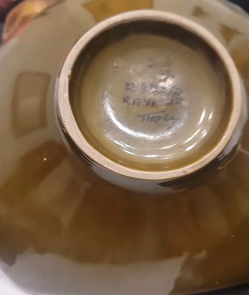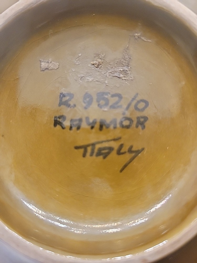 This vintage Raymor Alviro Bagni Italy Studio Art Pottery ashtray is a must-have for any mid-century modern collector. The square shape and glossy finish make it a stylish addition to any decor. The greenish brown khaki color adds a touch of warmth to the piece. Crafted from high-quality ceramic, this ashtray is suitable for cigarettes and is handmade with the pottery production technique. The backstamp is painted and the item weighs 13 oz with a width of 6.5". This ashtray is a unique piece of art pottery that will make a great addition to your collection. Notes: photos indicate minute specks of paint chips as noted . Please examine all the photos for the condition. Thank you