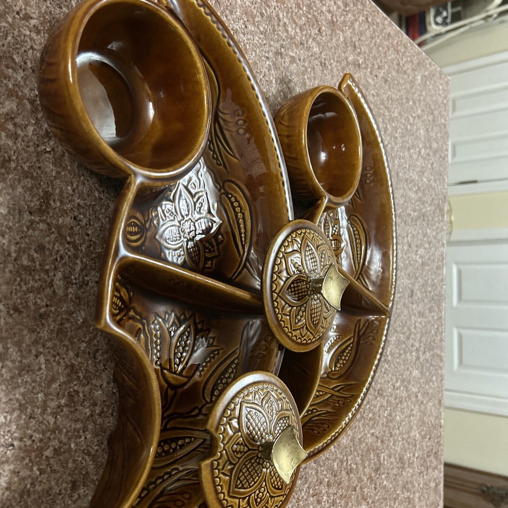 The item was in excellent condition and packaged very well. It was clearly used ( some food particles/dirt on it), but no chips or nicks. Great condition for such an old piece.