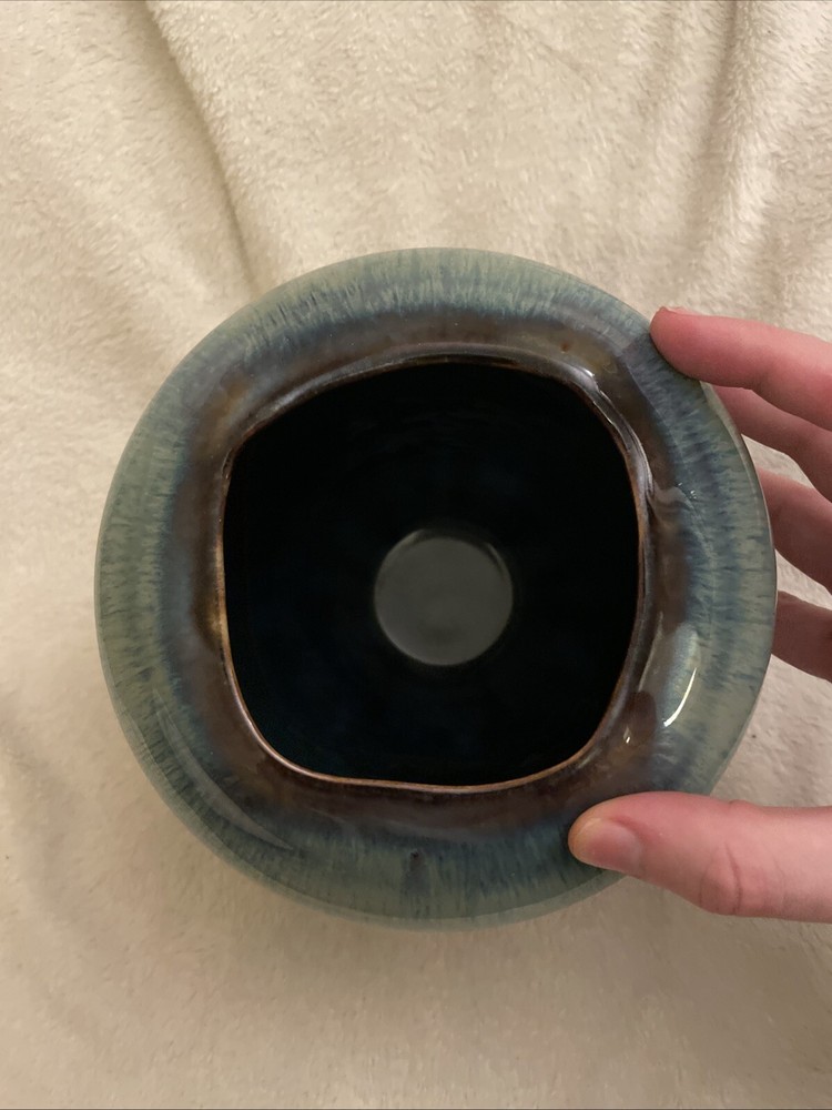 Absolutely love this handmade Bill Campbell vase! The unique square shape and stunning blue glaze make it a standout piece. Perfect size at 7 inches—fits beautifully on shelves or tabletops. The artist’s signature adds authenticity, and the vintage charm gives it so much character. Looks elegant in any space and feels like a one-of-a-kind treasure. So glad to add it to my collection—no flaws, just pure artistry!