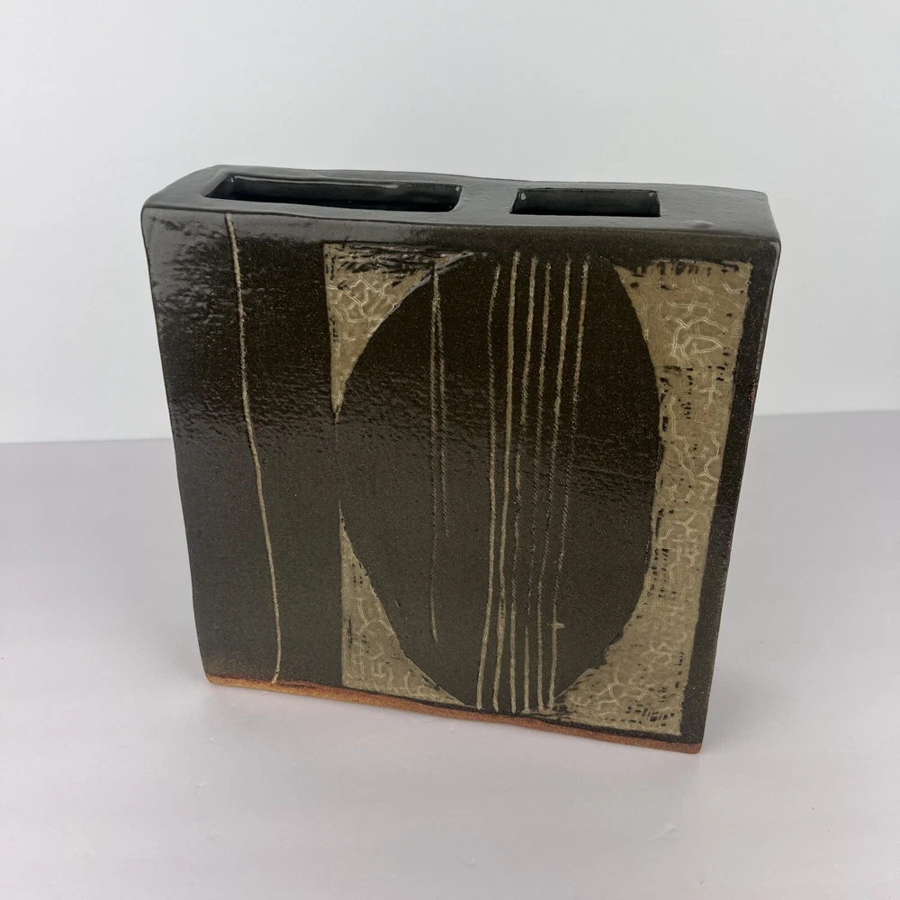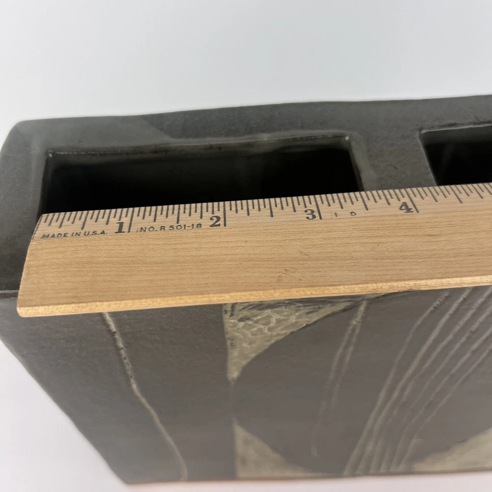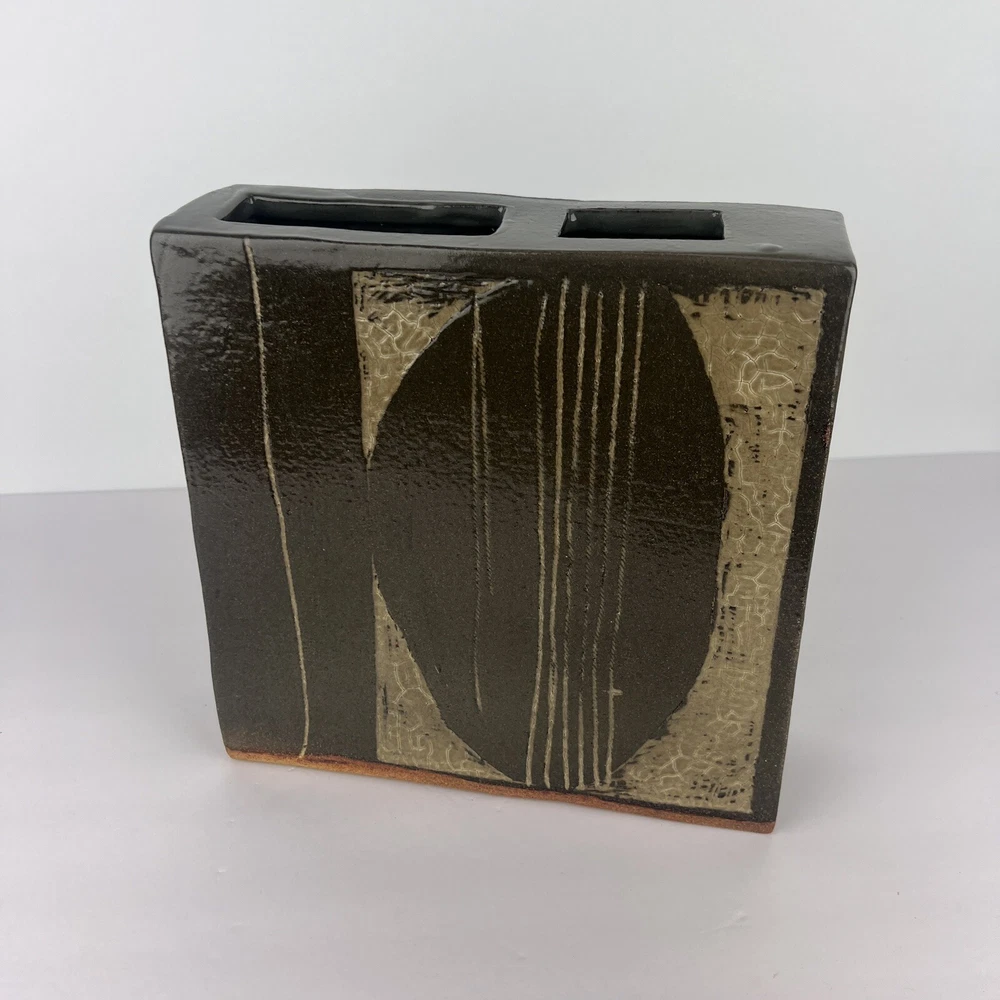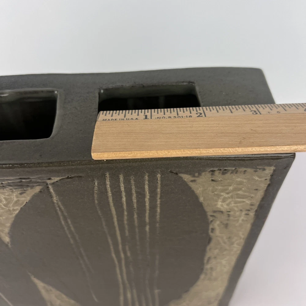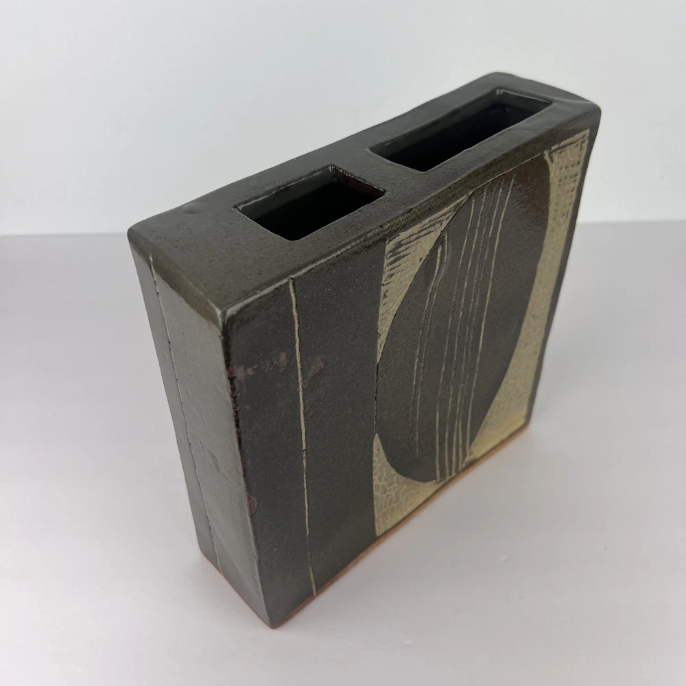Hi & welcome to PaulasLoft - a shopping experience for unique, eclectic, artistic and vintage home decor! Very cool vintage pottery vase! Signed Combes 1980 Slab clay construction with thick glaze Modernist design Appx size: 9" tall, 9" long, 2.75" wide Appx weight: HEAVY! 7 pounds Click here for more unique ikebana items! Thanks for your interest in my items. If you would like further information on any item, please send me a message - I am happy to help! Thanks for stopping by! Paula PaulasLoft - Your Home, Uniquely You!