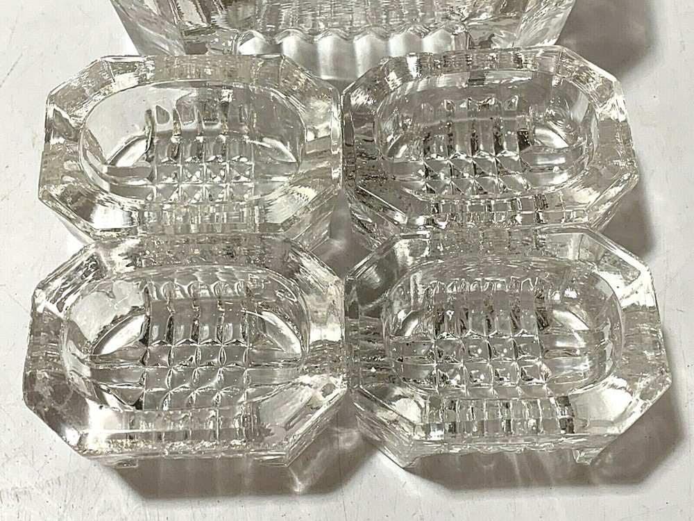 This vintage salt cellar set is a charming find! The four individual salts and large cellar have lovely character with minor wear that adds to their antique appeal. Perfect for collectors or as a unique serving piece—just check the photos for details. Great condition overall!