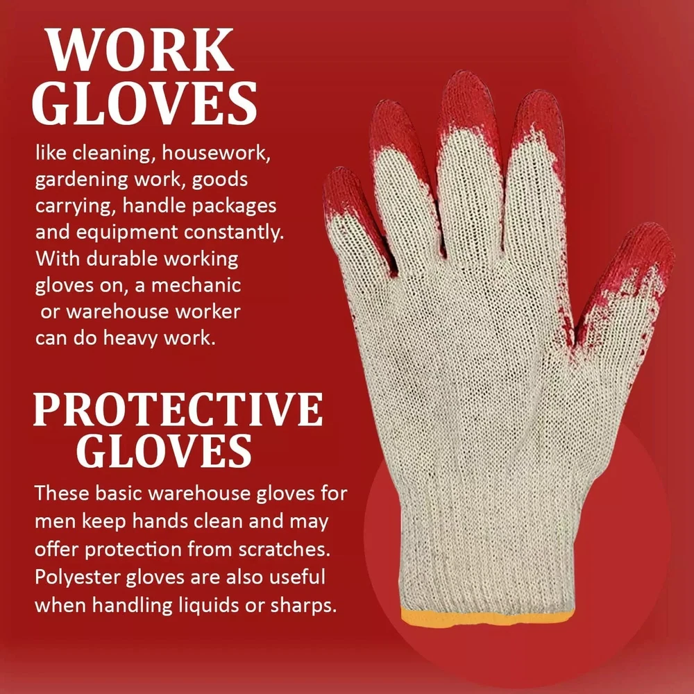 These gloves are awesome! Super durable with a strong latex-coated palm that grips like a champ—great for heavy-duty work. The red color makes them easy to spot, and they fit snug without being too tight. Perfect for warehouse, construction, or any tough job. Comfy for all-day wear and priced well for bulk buyers. Definitely worth it!