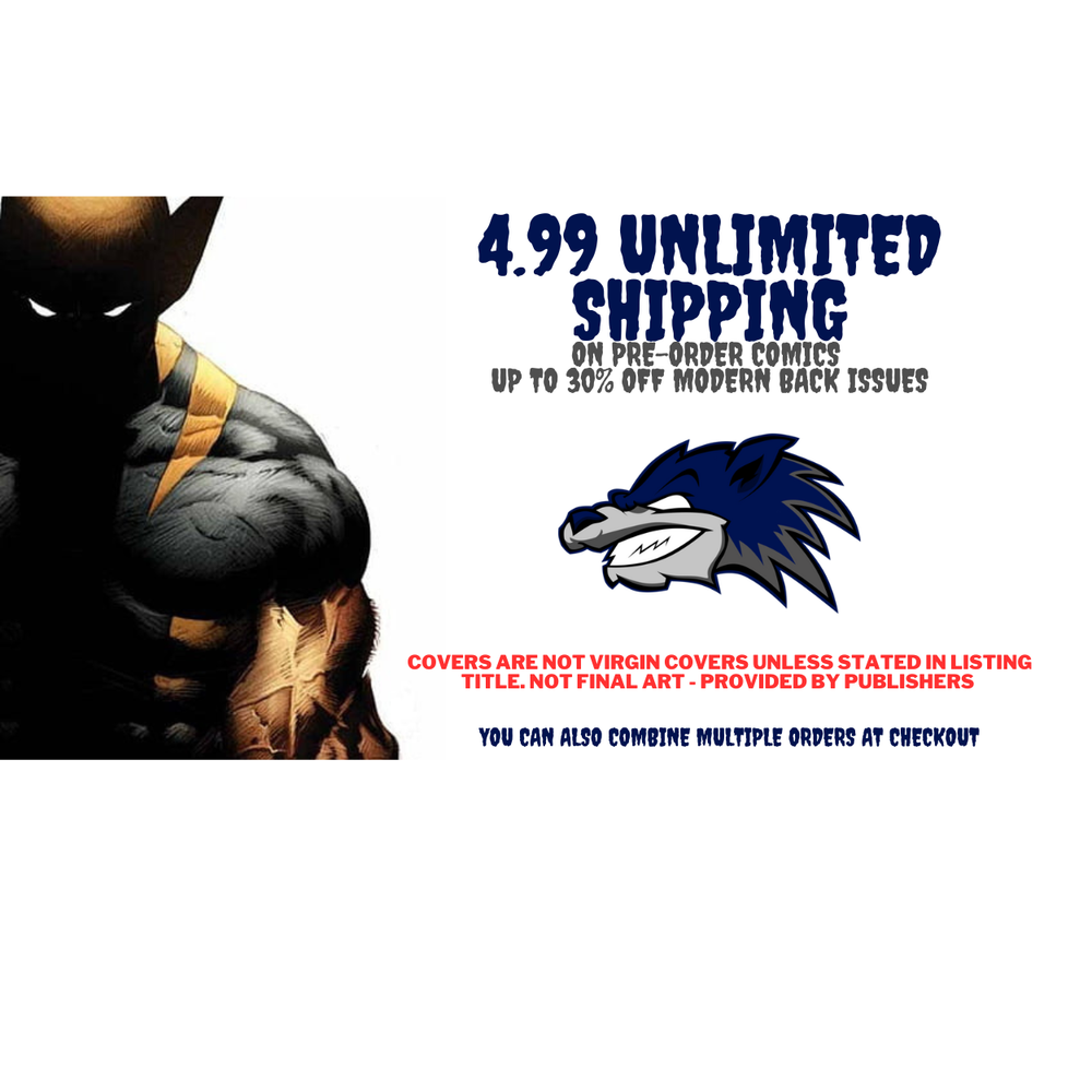 MARVEL PRH (W) Jonathan Hickman (A/CA) Greg Capullo LOGAN: OUT FOR VENGEANCE! The unspeakable has come to pass, and now SABRETOOTH, OMEGA RED and DEADPOOL WILL PAY! Jonathan Hickman and Greg Capullo raise the stakes for WOLVERINE as his near-death experience sends LOGAN toward untempered vengeance on his enemies. You won't want to miss this key chapter of this prestige miniseries, destined to live on as one of Wolverine's all-time most brutal tales! RATED PARENTAL ADVISORY. Rated T+ **Please Read All** ****NOT FINAL ART NOT A VIRGIN COVER UNLESS SPECIFIED in title listing**** Images provided by publishers. One, low flat rate unlimited shipping on pre-order comics and most in-stock comics. Other items in the store may vary on shipping cost. Final order cutoffs (FOC) DC - *Sunday 5 pm EST* Marvel, Image and indie publishers -*Monday 5 pm EST* ORDERS and Images Orders do not ship until after the release date by publishers. Delays may occur due to publisher or damaged books shipped from distribution. Some covers and release dates are changed by publishers at the last minute. Items marked as shipped and tracking numbers provided once all items are in stock and ready to ship when awaiting release dates. We are not responsible nor can we control changes in dates, artwork et al. by the publishers and distributors. Images are preliminary covers provided by the publisher. Covers are not virgin covers unless specified in the listing title. RELEASE DATES AND ITEMS Combined orders will be sent once ALL items are available for shipment. IF you mix in stock and preorder items, or different release dates?NO ITEMS ARE SHIPPED UNTIL ALL ITEMS ARE AVAILABLE THAT WAS IN THE ORDER- Unless you pay an additional shipping charge for an extra order. Tracking provided once items are in stock from Distributors, processed, packaged and shipped with care. Comics All comics bagged and boarded and shipped and secured in a box or Gemini mailer. Books equally cared for and shipped securely in solid packaging. Combined orders ship once all items are available. Orders will be in 9.0 condition or better. Trying to get the best copies possible, but reliant on publishers and distributors. Listing pictures are presale images from publishers. Collector As a collector since the 1970s you can be sure that all comics are cared for and stored in a temperature and humidity controlled environment. Graded and Allocations Graded comics, books, certain comics and premium comic shipping pricing will vary. Limited quantity orders subject to allocation will receive immediate full refund upon no allocation notification from the distributor. FINAL NOTICE Last notice: Mixed items/orders with in stock and preorder items will not ship until all items are on hand. Refunds and presales Refunds: See Refund page for details. No refunds on incentive presale comics as it requires us to order these comics based on customer orders.