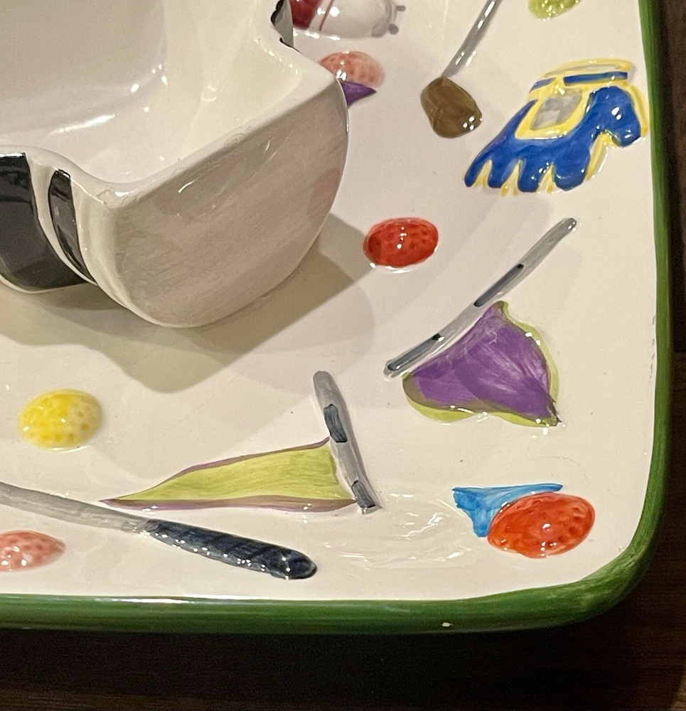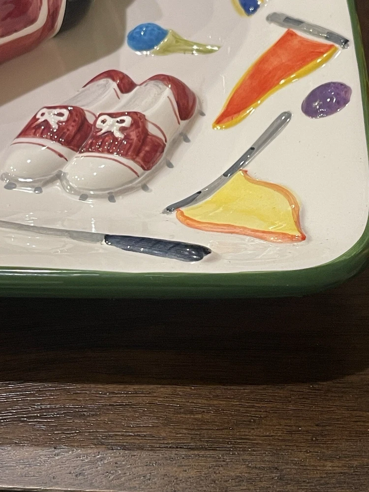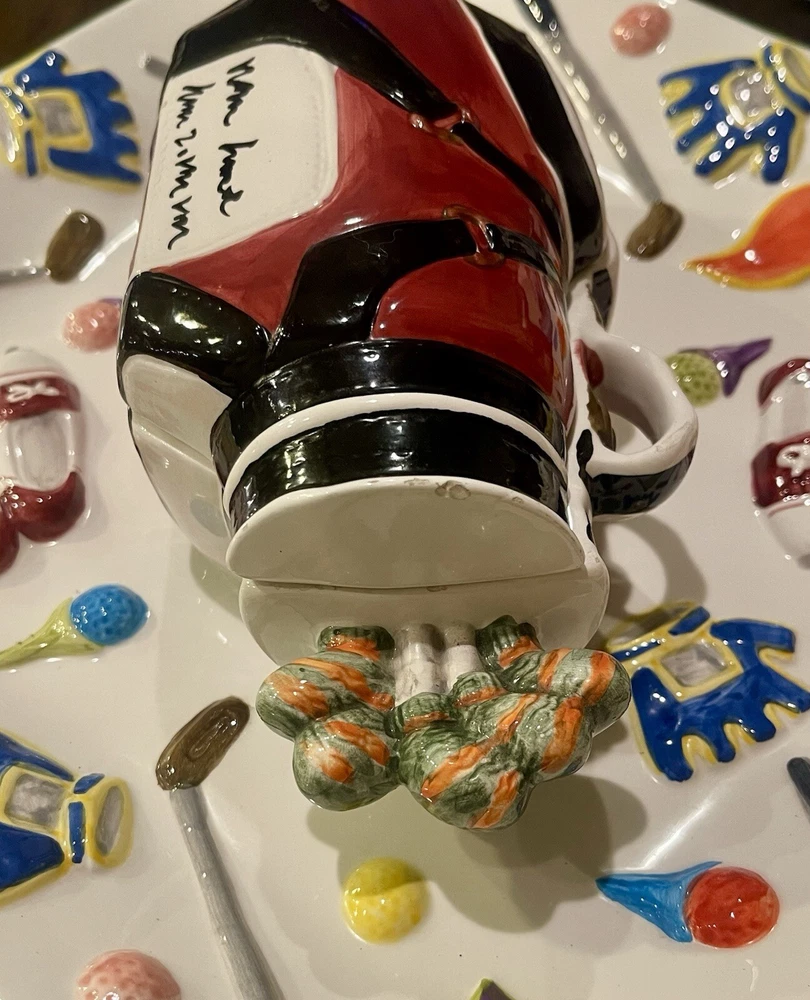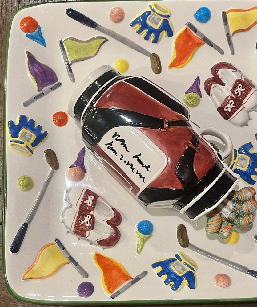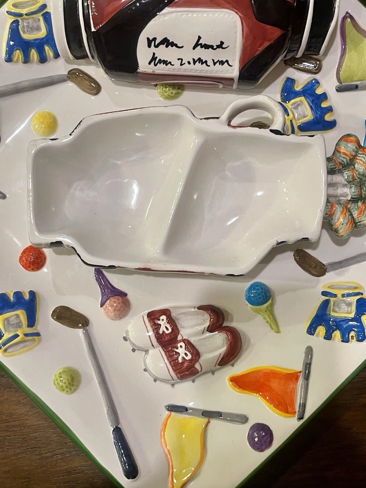 WORLD BAZAAR INC Golf Themed Chip and Dip Ceramic Party Tray Large with Lid This World Bazaar Inc. ceramic serving set is perfect for any golf-themed party. The large square tray features a glossy finish and comes with a lid for easy serving. With two compartments, this set is perfect for holding chips and dip or other small snacks. The multicolor golf-themed pattern adds a fun touch to any party décor. Measuring 13 inches in length and width, this serving set is made of durable ceramic material and is easy to fill. Whether you're hosting a casual get-together or a larger party, this serving set is a must-have. Wolf River Mercantile welcomes all communication and questions from potential buyers to make for a smooth transaction. In order to improve your experience, feel free to reach out via eBay should additional information, questions or assistance is needed. It is our goal and desire to provide 5-star customer service, to include fast shipping and accurate descriptions of the item. While it is never our intention to overlook something, make an error or mistake, please allow us an opportunity to correct it prior to leaving negative feedback or opening a ticket with eBay . Great customer service is of the utmost importance to us! SHIPPING: We are more than happy to combine shipping with items purchased and paid for on the same day. Orders are always shipped out within one business day, unless we are on published time away. Often times shipping will occur the same day. Please note all communications will only be done through the eBay platform. RETURNS: a generous 30-day return policy for items not as described or non-working unless otherwise described in the listing, so you can shop with the utmost confidence. Items are packaged carefully, so if an item is damaged during shipping and delivery, buyer will need to file a claim with the carrier. Authorized returns must be returned with all the same packaging and original box. Seller to pay return shipping for authorized domestic returns. Customer to pay return shipping for any authorized returns from international customers, to include Hawaii, Alaska and Guam. International and Non-Domestic Buyers: shipping will be handled through the eBay Global Shipping Program. Import duties, taxes and charges are not included in the item price or shipping cost. These charges are the buyer's responsibility. Please check with your country's customs office to determine what these additional costs will be prior to bidding or buying. We also do not ship to PO Boxes. As a Female Menominee Native American small business owner, Waewaenen (Wah-way-en-en) Thank You for supporting Wolf River Mercantile ~
