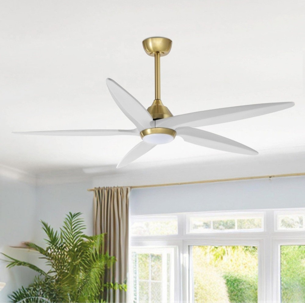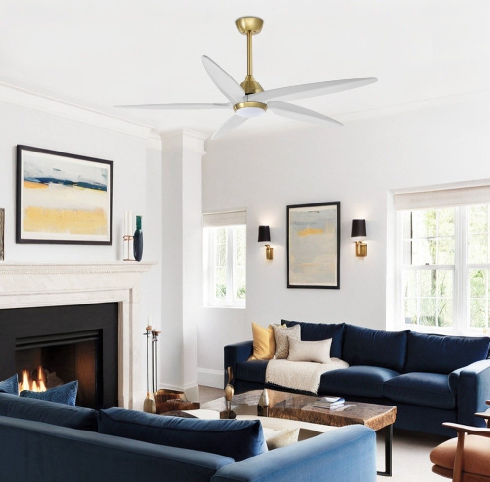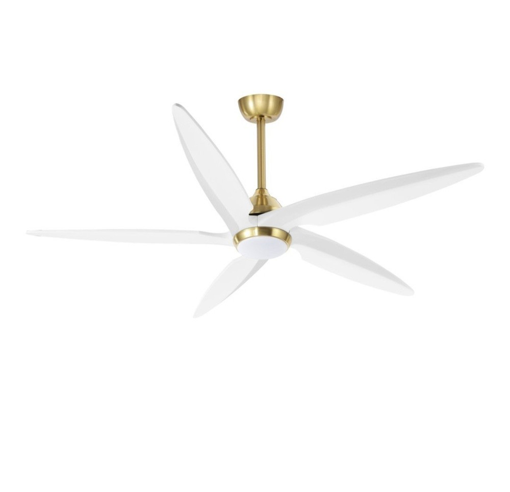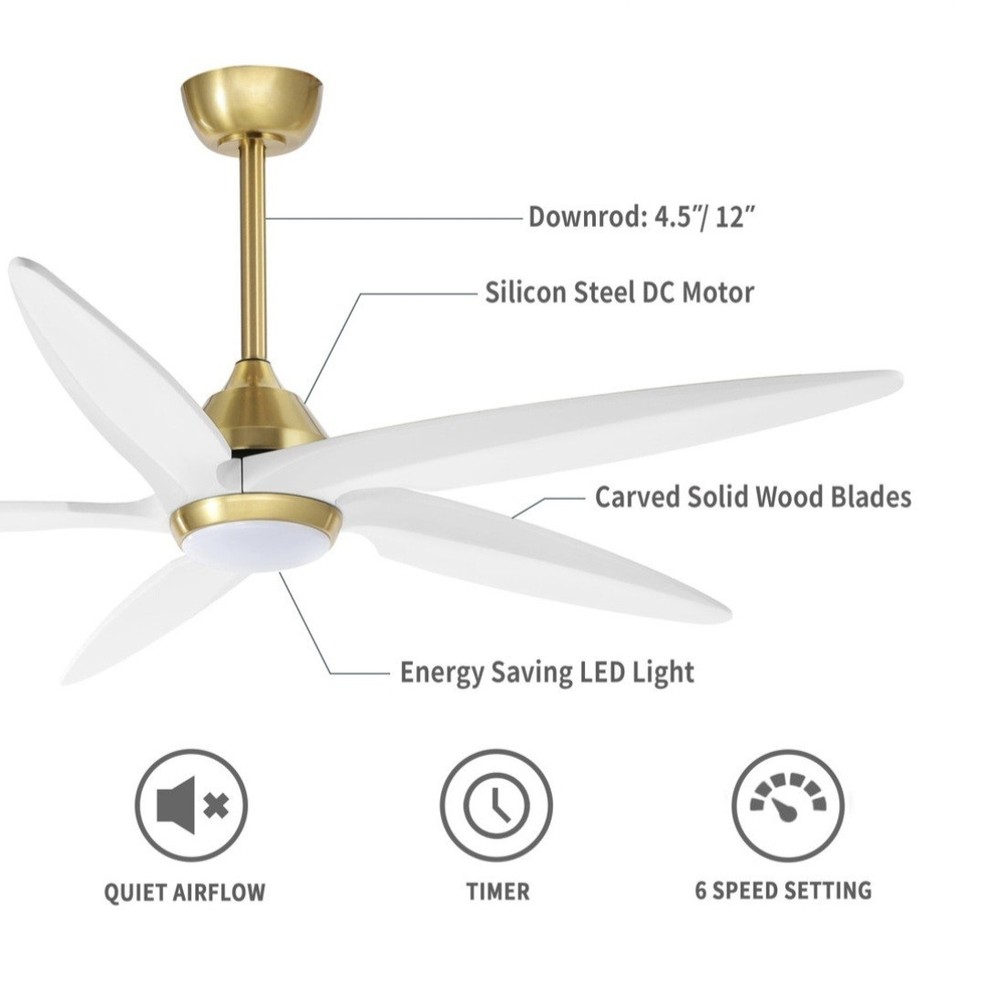 The Wade Logan® 5 Blade Solid Wood Ceiling Fan with LED Light and Remote Control is a stylish and modern addition to any bedroom, living room, or dining room. This ceiling fan features a clear white or warm white LED light, 6 speeds, and a remote control for easy operation. With a fan width of 54 inches and a sleek white design, this fan is designed for indoor use and offers energy efficiency with its A+++ rating. The fan is corded and operates at 110 volts, making it a convenient and practical choice for any contemporary space. MSRP: $340 Fast Free Shipping in the Continental US.