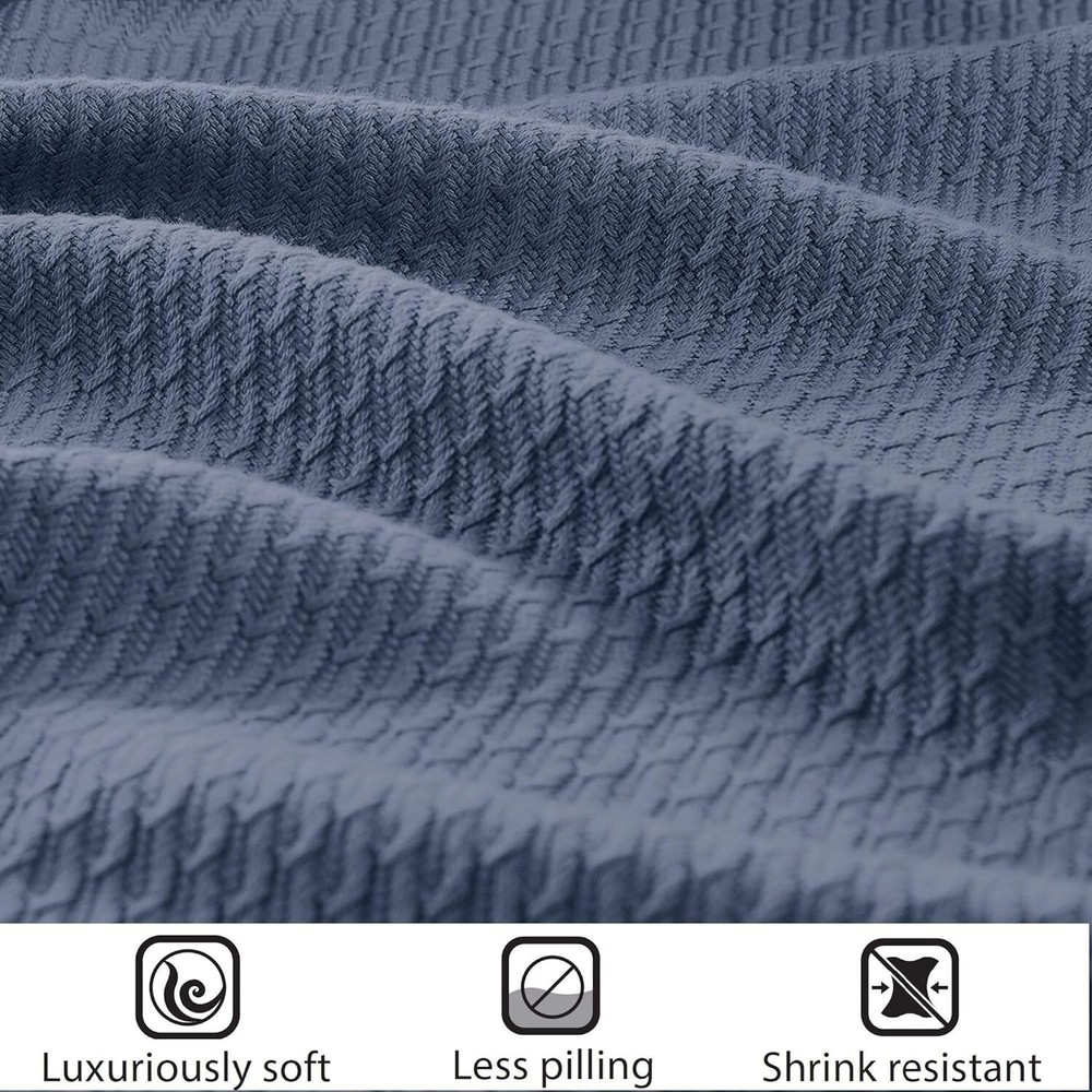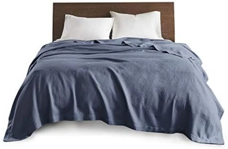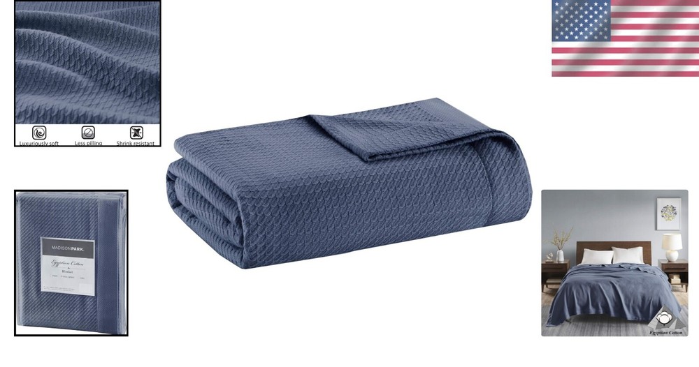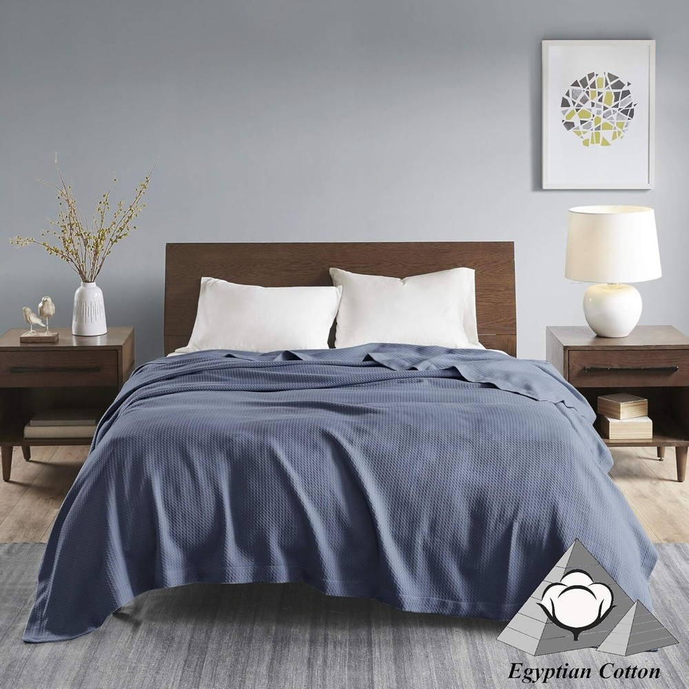 Waffle Knit Egyptian Cotton Blanket Color: Blue Size: 90" W x 90" L (Full/Queen Size) Features: Made from 100% certified genuine Egyptian cotton for ultimate comfort. Super soft, breathable fabric perfect for -round use. Tightly woven design minimizes piling and snagging ensuring durability. Oeko-Tex Certified - free from harmful substances and chemicals. Machine washable for your convenience: wash cold, gently and separately; tumble dry low. Benefits: Envelop yourself in exceptional softness and warmth. Stylish solid pattern that integrates seamlessly with your home decor. Comfort that lasts, designed to resist shrinkage, pilling, and snagging. Easy care means more time for you to enjoy its luxurious feel. Why Choose Our Waffle Knit Egyptian Cotton Blanket? Transform your relaxation experience with our Waffle Knit Egyptian Cotton Blanket. Designed for discerning individuals who value both luxury and practicality, this blanket offers unmatched softness and durability. The beautiful blue hue adds a touch of elegance to your space while providing the ideal warmth and comfort for cozy nights in or serene afternoons on the sofa. Enhance your living environment with a blanket that not only complements your decor but is also crafted with your wellbeing in mind. The Oeko-Tex certification guarantees you a product free of harmful substances, allowing you to wrap yourself in peace of mind. Indulge in the ultimate in cozy luxury and elevate your home aesthetics – acquire your Waffle Knit Egyptian Cotton Blanket today! Material: Egyptian Cotton Features: Machine Washable Theme: Plain Department: Unisex-adult Room: Bedroom Size: Full/queen Type: Blanket Color: Blue Pattern: Waffle Style: Modern