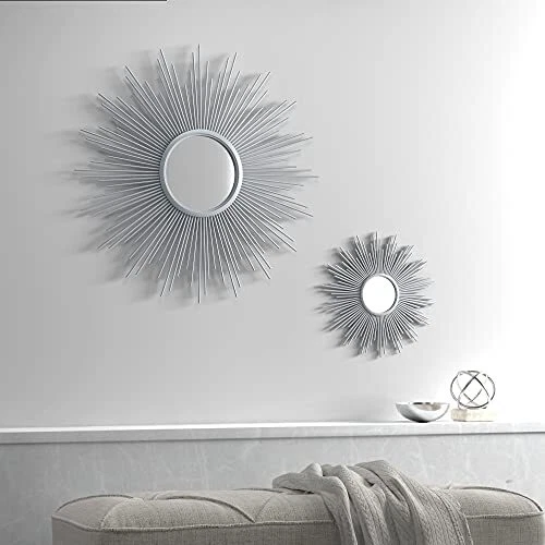 Menu 1. We require immediate payment. 2. We currently accept payment via eBay managed payments only. 3. Once payment is cleared, we will dispatch your shipment within 1-3 business days. Please refer to the "Shipping" tab for more information regarding shipping speed to your destination. Wall Décor Fiore Metal Sunburst Mirror for Living Room - Home Accent, Ready to Hang Bedroom Decoration, 29.5" Diameter, Silver Product description Iron: 80%, Glass: 10%, Mdf: 10% Add a modern and glamorous touch to your space with our Sunburst Mirror. A stylized iron frame is featured in a sp design creating beautiful dimension, while the Silver foil adds a rich sheen and luster. For your convenience it's ready to hang featuring keyhole fiuxtures on the back make it easy to hang on any wall. 1 Mirror: Dia 29.5" x 0.98"D, Mirror Spec: 8"W x 8"H; Item is sold as single piece; available in two sizes: dia. 29.5" (mirror dia. 8") and dia. 14.5" (mirror dia. 3.9") Care Instruction: spot clean only PLEASE MESSAGE US IF YOU HAVE ANY OTHER QUESTIONS, AND MANY THANKS FOR READING ALL OF THIS. Copyright ©#. All Rights Reserved.
