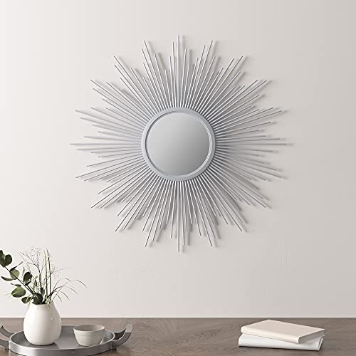 This stunning sunburst mirror instantly elevates any room with its sleek silver finish and eye-catching design. The perfect blend of modern and elegant, it adds a luxurious focal point to my living room wall. Lightweight yet sturdy, it was easy to hang and looks far more expensive than it is. The intricate metalwork catches the light beautifully, creating a dazzling effect. Absolutely love how it transforms my space!