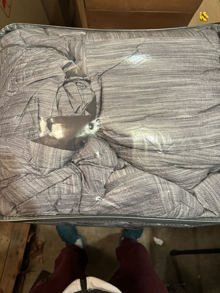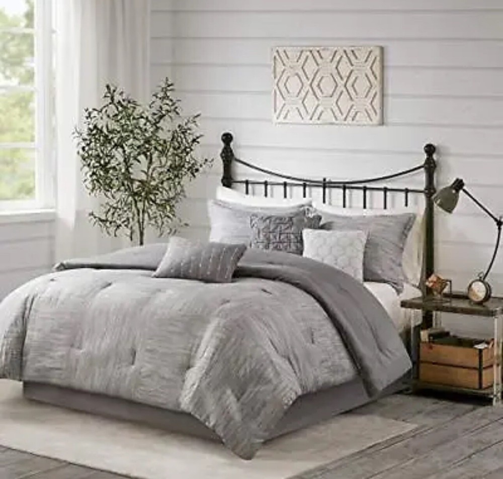 Elevate your bedroom with the Walter Comforter from Madison PARK, featuring a luxurious seersucker print design that is perfect for all seasons. This King size comforter is made of down alternative material, ensuring a cozy and comfortable sleep. The grey color and seasonal theme of the comforter add a touch of elegance to your bedroom décor. The comforter package dimensions are 23.58x20.31x18.7 inches and it weighs 14.35 pounds. This bedding set is perfect for your bedroom and is a great addition to your home. It comes with new tags and is the perfect upgrade to your bedding collection.