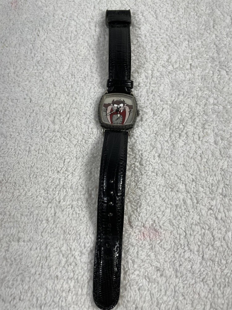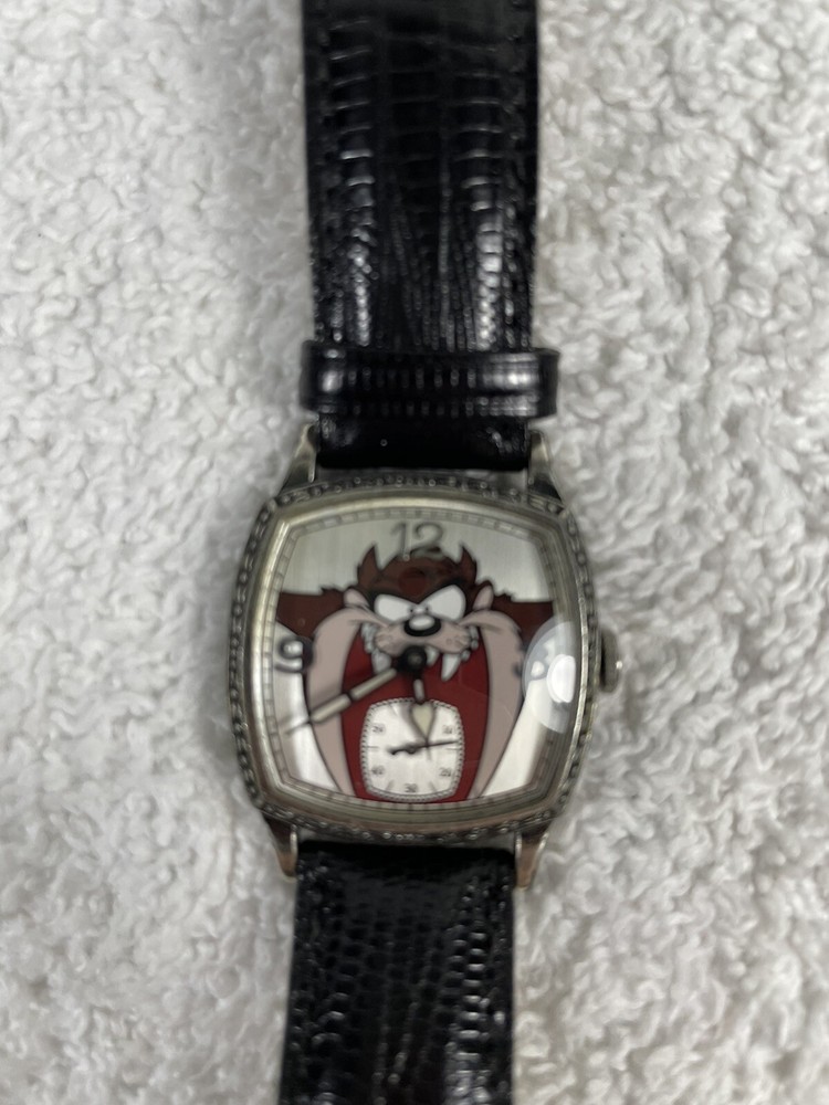 Limited Edition 1996 Director Series TAZ Wrist Watch - NEW BATTERY works perfect! This sold out 1996 released vintage style numbered limited edition "TAZ" Tasmania Devil watch by Robert McKimson was exclusively commissioned by Warner Bros as a tribute to the original depiction of Taz by the Warner Bros animators. The case is Antique Aluminum Filagre. Was a display watch so barely worn, no box or papers. Three hand quartz movement dial with analog display. Rectangular Case diameter 36mm x 24mm., mineral crystal, Textured black 18mm leather band. Each case back has a unique limited edition number and signature engraved. This is number 1263 of 2500 I do not ship outside of the United States except through eBay's Global Shipping Program (GSP), which calculates the international portion of the shipping charges (including import charges and fees). Please be aware that the GSP does not allow for combined shipping discounts. The seller has no control over the GSP charges and cannot adjust them. If you buy multiple items, you will pay the shipping and import charges calculated by the GSP on each item.