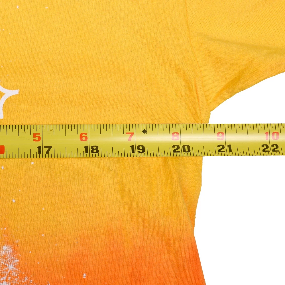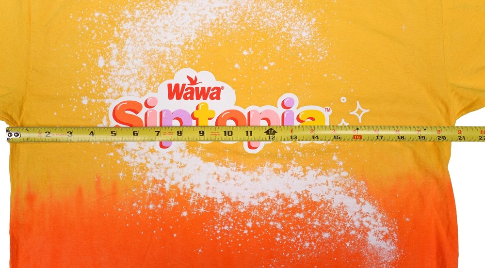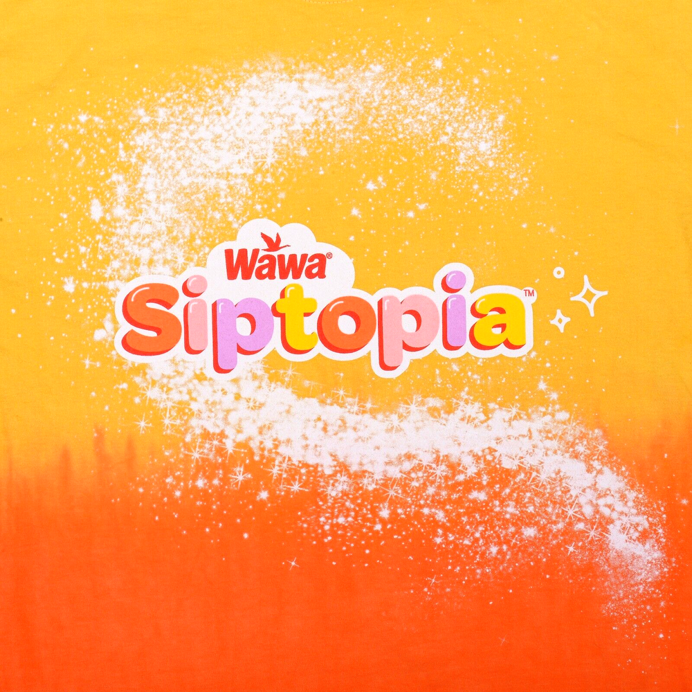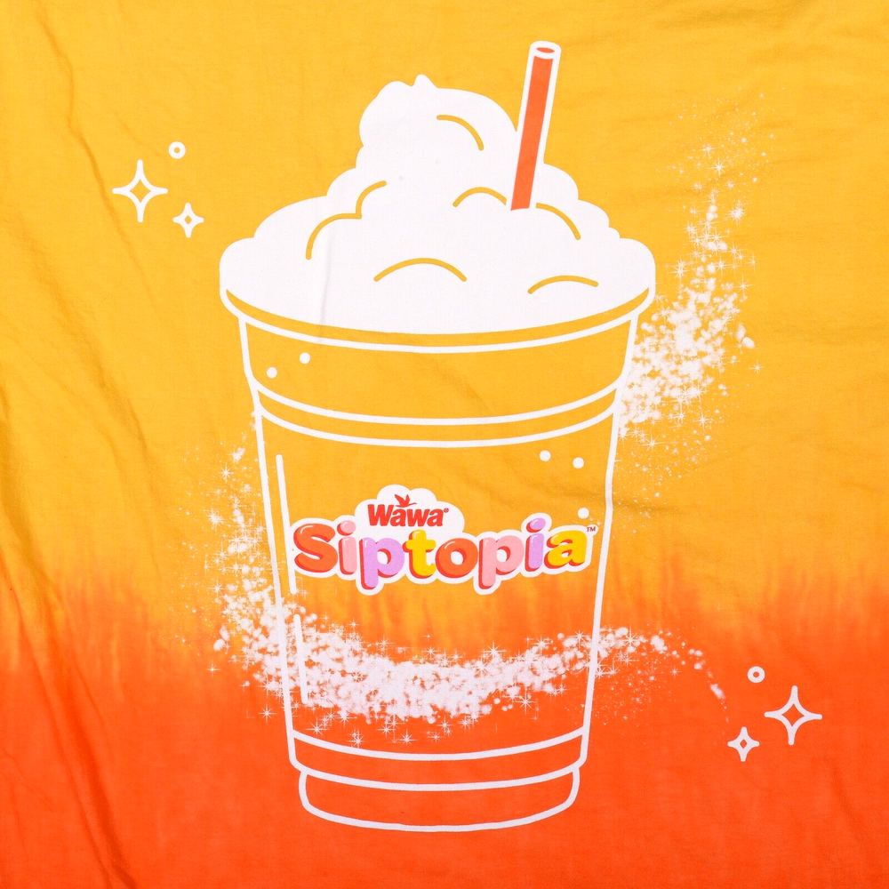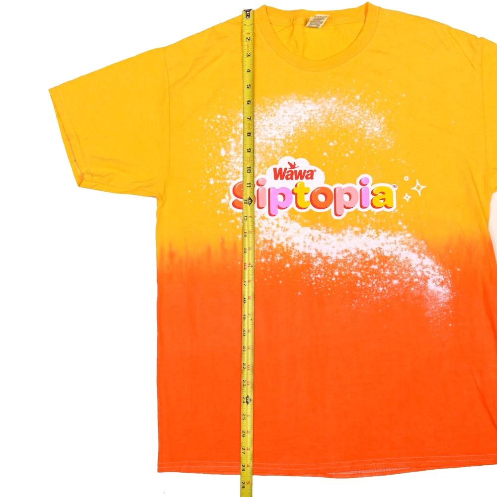 Wawa Siptopia Yellow Orange Dip Dye Tie Gradient T-Shirt Men's Size Large This shirt is a pre-owned Men's Size Large; has a spot of dark dye on the back right sleeve seam, but looks great otherwise. Measurements taken while flat (as photographed): Approx. 28.25" in length; width is 20.50" pit to pit. If you are unsure about sizing, please take a minute and measure a very comfortable shirt that you own to compare. Photos are of the actual item for sale. Please review all images prior to purchasing as they will show the condition best. All sales final. Thanks for looking!