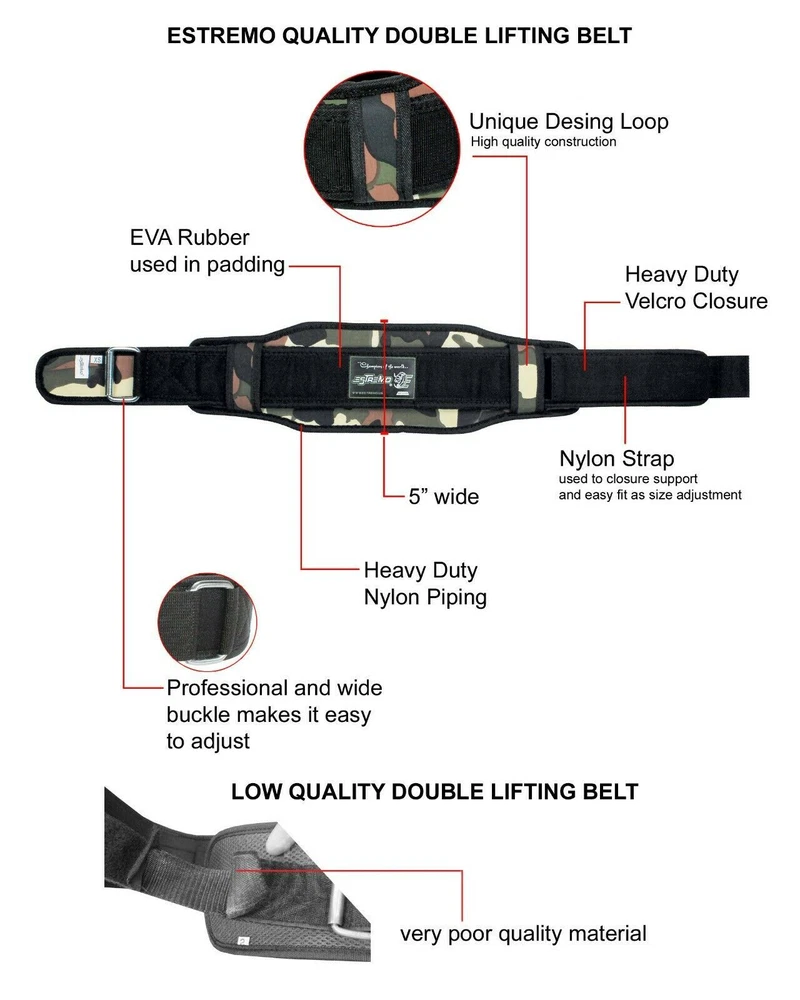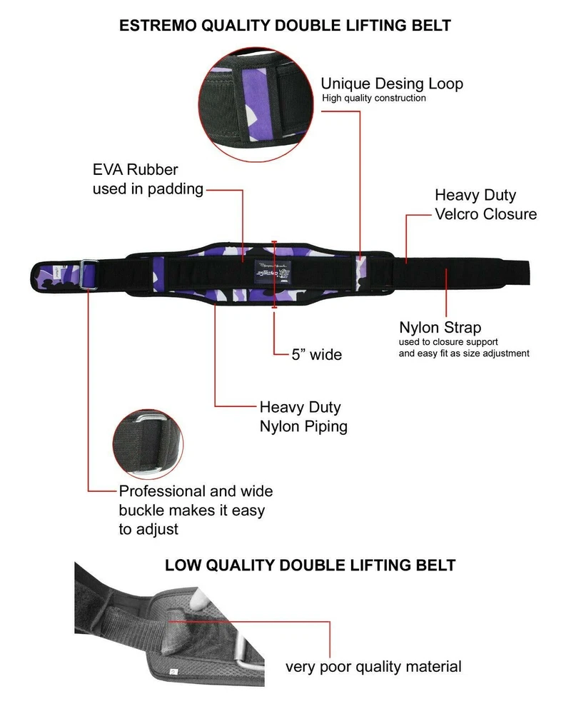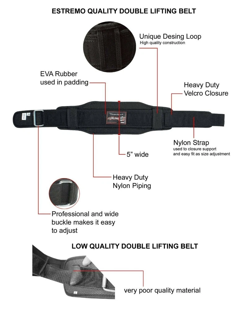 This weight lifting belt is perfect for your next gym session or crossfit workout. The 6" double back support belt from ESTREMO is designed for both men and women and features a hook and loop fastener for a secure fit. Made from neoprene material, this belt provides the perfect amount of support for weight lifting and bodybuilding activities. The belt also includes a dipping belt for added convenience and is suitable for powerlifting and other strength training activities. With its sleek design and durable construction, this belt is sure to become a staple in your fitness routine. USE FOR PROFESSIONALS AND BEGINNERS- ESTREMO premium neoprene for weightlifting are designed to be both beginner-friendly, and also capable of performing at the highest level in professional competitions. Our squat belts for adults Our belts are tested for maximum weights and support, letting you focus on the competition. Our back support belt, Perfect Use for Cross Training athletes, weightlifters, bodybuilders, enthusiasts and regular gym goers. PERFECT FOR ANY EXERCISE: - ESTREMO Lumbar back supports gym squat , workout belts for women lifting, Powerlifting, or workout back brace! Each exercise will benefit from added back support and relieve pressure, womens weightlifting belt are made of Premium quality material neoprene the biggest role in your overall physical stability. STRON AND QUICK BUCKLE LOCKING - Our Belt designed specifically for Adults Unisex features a heavy-gauge steel tensioning buckle Don't risk your body and results to a subpar trust the lifting belt women and men use everyday to achieve their goals! belts for men should promote confidence, and that's what ESTREMO promotes every day weighted.so you can reduce the risk of dangerous injuries while doing squats, power cleans, dead lifts, clean and jerks. FULLY ADJUSTABLE: Velcro closure with HG-stainless steel roller buckle gives you complete control on the compression you want! Padded cushioning provides ultimate comfort. Waist trainer men training faja para hombre Portable home gym weightlifting .Comfortable Lumbar Support during any kind of Strength Training. LIFE TIME GUARANTEE -Our Belt has been designed for maximum performance, comfort and great looks. Our Protective Gear Customer Satisfaction Guarantee Policy with Lifetime Warranty. 100% We want you to have the perfect size for your gym for men - If you find your workout for male & female doesn't fit perfectly, reach out to us directly and we will get a correctly sized out to you ASAP.