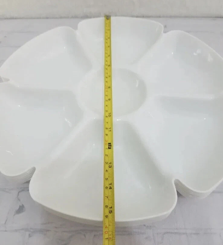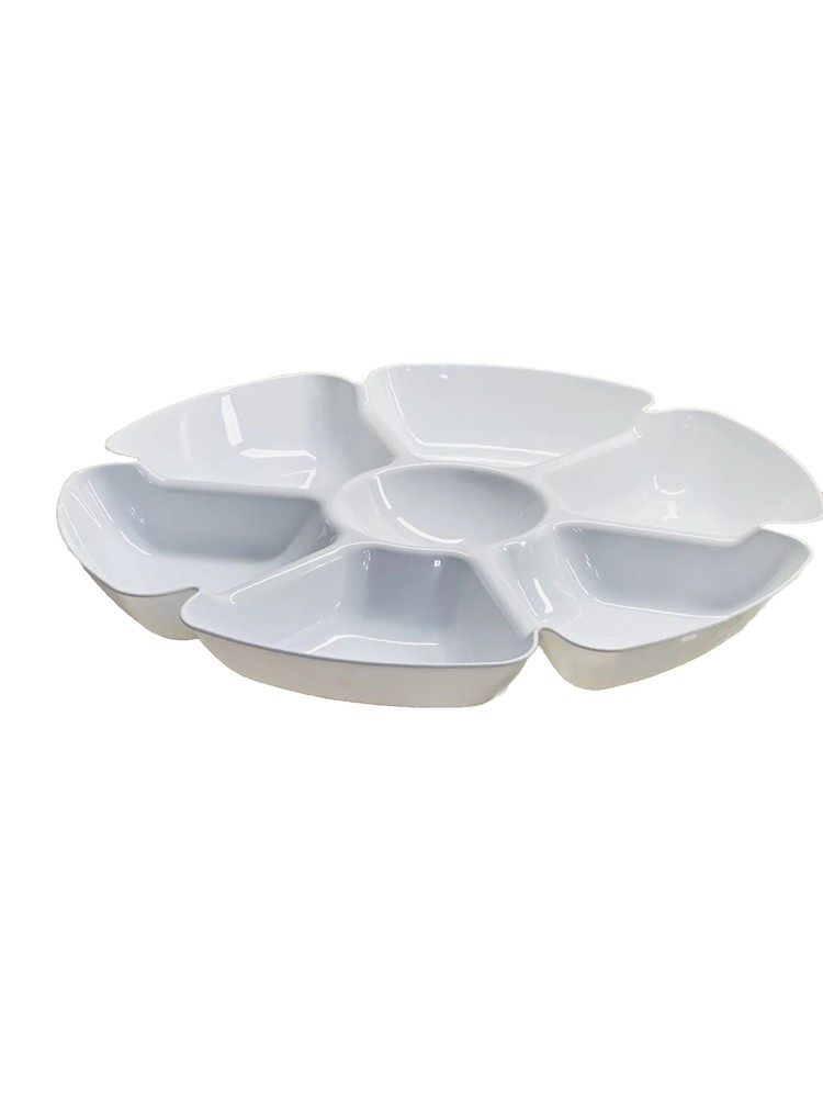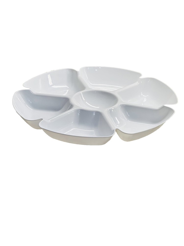Presenting a versatile and stylish serving tray perfect for any occasion. With six compartments and an 18-inch diameter, this large plastic tray is ideal for holding chips, dips, fruits, and more. The solid pattern and farmhouse style make it a beautiful addition to any kitchen or dining room, while the matte finish adds a touch of elegance. Crafted from durable plastic, this tray is built to last and can easily be cleaned with a damp cloth. Whether you're hosting a party or simply serving snacks to your family, this tray is sure to impress. Add a touch of charm to your home with this beautiful and functional serving tray. ShipN24Hours. Inventory Location Steps by Upper Level