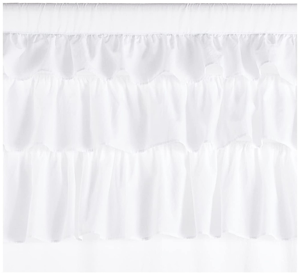 Vintage chic meets southern charm with the Anna Single Window Curtain. This Single Window panel features oversized ruffles in a crisp white that adds charm and sophistication to your home decor. Made from 100% cotton voile, this Single Window curtain is sure to freshen any room with its natural feel and classic look. Hang using the rod pocket top for a simple finish. Fits up to a 1. 25" diameter rod. Vintage chic meets southern charm with the Anna Single Window Curtain This Single Window panel features oversized ruffles in a crisp white that adds charm and sophistication to your home décor Made from 100% cotton voile, this Single Window curtain is sure to freshen any room with its natural feel and classic look Hang using the rod pocket top for a simple finish Fits up to a 1. 25 diameter rod. Set Include: 1 Single Window Panel: 50x84, as shown in image - Need to purchase 2 curtain Panel for each Single Window for standard coverage. Material Details: 100% cotton voile, oversized ruffle, rod pocket 25 diameter rod Fits up to a 1