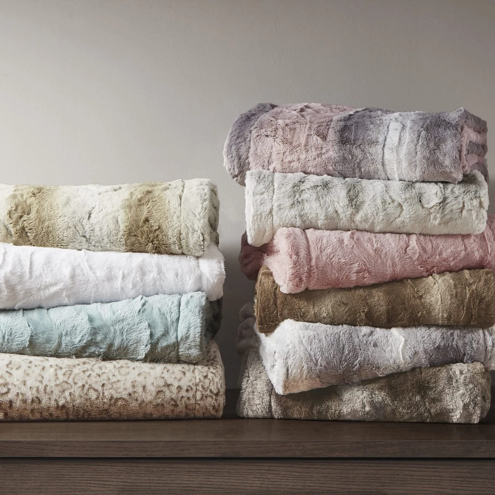 The Madison Park Zuri Blanket features a luxuriously soft faux fur and reverses to a solid luxe microfur. A warm blanket and a glamorous accent to your home with Madison Park’s Zuri Oversized Faux Fur Throw. Exceptionally soft faux fur mimics the warmth and texture of real fur, while the marble print gives the throw a beautifully stunning look. 1 Throw: 60"W x 70"L Care Instructions: Machine Wash. Minor shedding is expected with faux fur material and should subside after 3-4 washes