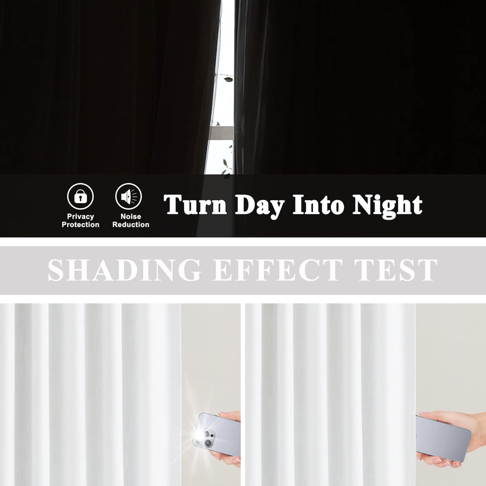 Store New Arrivals Add to Favorite View Feedback Contact White Pinch Pleated Full Blackout Curtains Thermal Insulated Window Curtains 90 Inch for Living Room Bedroom Room Darkening Pinch Pleat Drapes with Hooks Back Tab 2 Panel 40" Wx90 L Description Item model number PinchBO40x90x2WH3 Style Modern Number of Items 2 Pattern Solid Country of Origin China Package Weight 3.62 Kilograms Theme Solid Opacity Blackout Inches Unit Count 2.0 Count Room Type Living Room, Bedroom, Home Office, Nursery, Dining Room Product Dimensions 90"L x 40"W Batteries required No Material function(f) {var _np=(window.P._namespace("DetailPageProductOverviewTemplatesJava"));if(_np.guardFatal){_np.guardFatal(f)(_np);}else{f(_np);}}(function(P) { P.when('A').execute(function(A){ A.on('a:truncate:po-attribute-truncate-2:updated', function(data) { var isTruncated = !data.truncateInstance.getIfTextFits(); var seeMoreElement = document.getElementById('po-attribute-see-more-id-2'); if(seeMoreElement) { seeMoreElement.style.display = isTruncated ? '' : 'none'; } }) }); })); Face: 75% Recycled polyester 25% Rayon, Lining: Base Fabric Recycled polyester, Flocking: 100 percent Rayon See more Top Style Pinch Pleat Model Name PinchBO40x90x2WH3 Seasons All Season Lining Description Lined Specific Uses For Product Room Darkening Included Components 2 Panels of Pinch Pleated Curtains, 18 Hooks Curtain Form Drapes Water Resistance Level Not Water Resistant Perfume Unscented Item Weight 6.6 pounds Size 40"W x 90"L (Pack of 2) Special Feature Window Treatments, Blackout Hanging Method Back Tab Color White Recommended Uses For Product Indoor Fabric Type Face: 75% Recycled Polyester 25% Rayon, Lining: Base Fabric Recycled Polyester, Flocking: 100 Percent Rayon Product Care Instructions Machine Wash Number of pieces 2 Face: 75% Recycled Polyester 25% Rayon, Lining: Base Fabric Recycled Polyester, Flocking: 100 Percent Rayon Ready Made:Each package includes 2 panels of pinch pleated curtain with 18 hooks(without rings),measuring 40"Wx90"L each panel. 100 Percent Blackout:Sewn with blackout coated lining,room darkening curtains can block out sunlight,uv rays effectively and provide thermal insulation,noise reduction and total privacy protection,which is a perfect choice for night shifter and people who are sensitive to the light.Please note that due to the grayish lining of the curtains,they may appear slightly grayish rather than pure white when hung up. Pinch Pleats Design:Each white curtain panel with 7 pinch pleats generates modern and luxury feel.Hanging these pinch pleat curtains to elevate your windows and increase the aesthetic value to any spaces,bedroom,living room,nursery,office,etc.Super heavy fabric with good draping effect. Multiple Hanging Ways:The luxury curtain have many hanging options to meet your different home décor needs:back tabs(4 inch),clip rings,ring hooks or for track system. Please note that 18 hooks are in the package but clips and rings are not included.Two weighted hems sewn at bottem increase the draping effect.Moving the pinhooks position to adjust the total height by 1-2 inches Easy Care:Curtains are machine washable in cold.Gentle cycle and do not bleach.Tumble dry low and iron on lowest setting as needed. Customized sizes are available upon request.Please understand that variations in color may occur on different display screens, and slight color discrepancies between production batches, as well as a length discrepancy of 1-2cm, are possible.If there are any problems with curtains,please reach out to us at any time. Product Description 1 Multiple Hanging Options 2 Multiple Colors 3 For Living Room 4 For Dining Room 5 For Bedroom The video showcases the product in use. The video guides you through product setup. The video compares multiple products. The video shows the product being unpacked. 1 Color Difference 2 Measurement Guide More Curtains Option from Vision Home Add to Cart Add to Cart Add to Cart Add to Cart Add to Cart Customer Reviews 4.7 out of 5 stars 1,459 4.7 out of 5 stars 646 4.8 out of 5 stars 63 4.8 out of 5 stars 39 4.7 out of 5 stars 149 Price $65.99 $ 65 . 99 $44.95 $ 44 . 95 $56.99 $ 56 . 99 $66.99 $ 66 . 99 $59.99 $ 59 . 99 Opacity Full Blackout Light Filtering Full Blackout 90% Blackout Full Blackout Fabric Type Rayon Blended Rayon Blended Rayon Blended Soft-hand Velvet Rayon Blended Top Style Pinch Pleated Pinch Pleated Pinch Pleated Pinch Pleated Back Tab/Rod Pocket Pattern Solid Solid Solid Embossed Solid Number of Pieces 2 2 2 2 2 ABOUT US We offer the best prices around on high quality products. Our E-store includes media such as books, movies, music and games while offering electronics, toys, sporting apparel, clothing, tools, general home, garden items and more. SHIPPING We are always working hard to ensure your package arrives as soon as possible. Please understand that some factors like weather, high postal traffic, and the performance of shipping companies are outside of our control. We offer free shipping to the lower 48 states and ship within 2 business days of payment, usually sooner. We do not accept P.O. Boxes. Please provide a physical address. For shipping outside of the continental USA, we only use eBay's Global Shipping Program.The item is shipped to KY and then sent to the rest of the world. International customers are responsible for all duties and taxes. Continue to check out in order to calculate costs for shipping the item to your country. Messages regarding eBay's Global Shipping Program MUST be directed at eBay EXCLUSIVELY. RETURNS We offer a 30-Day Return Policy on items which you are not completely satisfied with. You have the option for a full-refund or an exchange of the item. No returns are available on items shipped outside of the USA. PAYMENT We accept PayPal. CONTACT US This page content is yet to come Please ad us to your favorite seller and visit again later Thank You CUSTOMER SATISFACTION We try our very best to make sure every customer is com