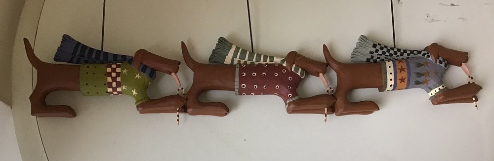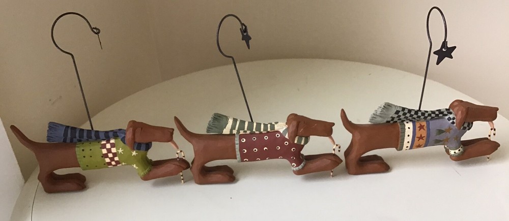 Deck up your Christmas tree with these beautifully hand painted dog-shaped folk art ornaments from Williraye Studio. The set includes three multicoloured resin ornaments with dogs holding candy canes. These are perfect for dog lovers and those who are looking for unique ornaments to make their Christmas tree stand out. Each ornament is a treat to the eyes and makes for a great gift for your loved ones as well. Add the Williraye Studio Set of 3 Dog with Candy Canes Ornaments to your Christmas decoration collection and make it extra special.
