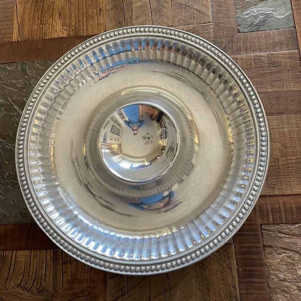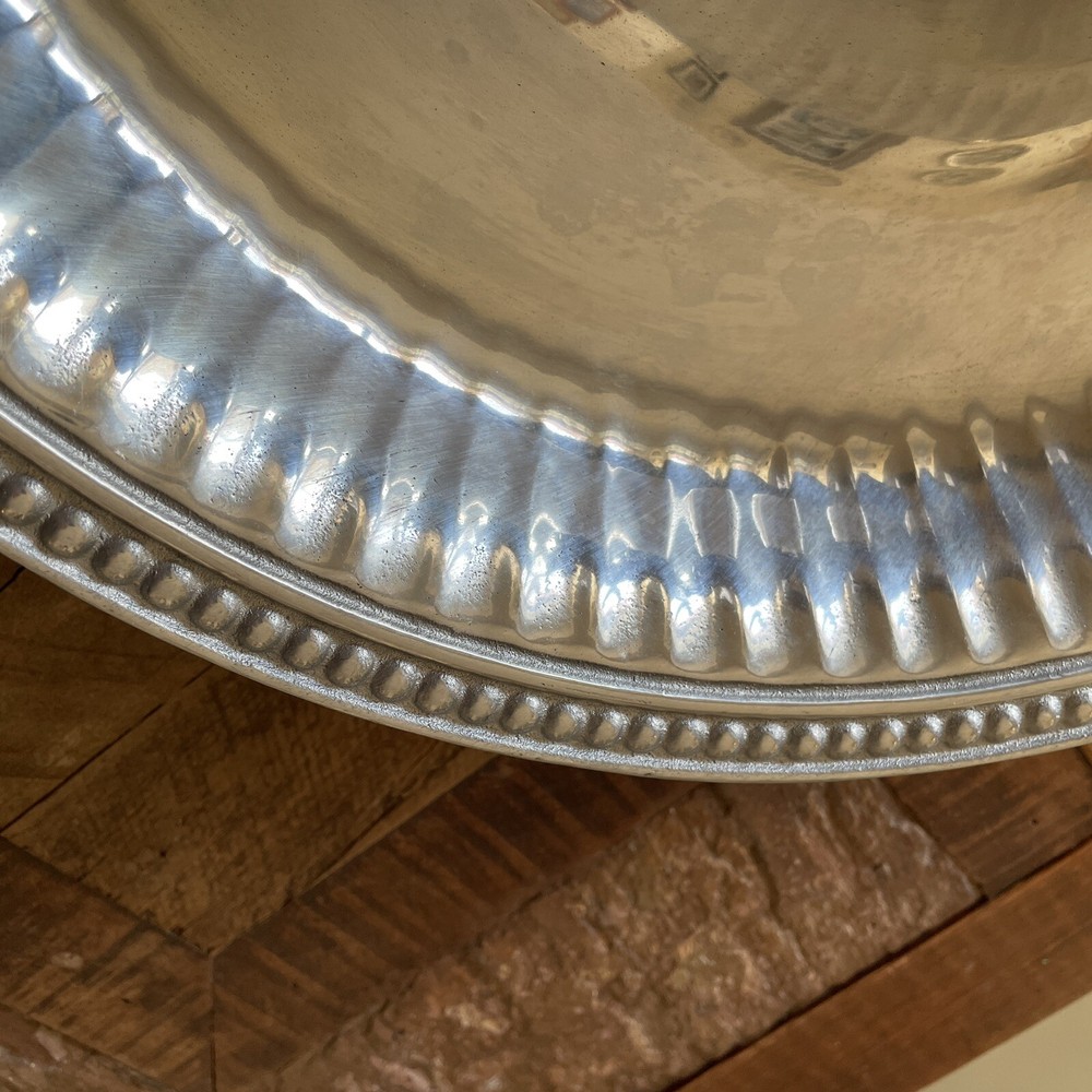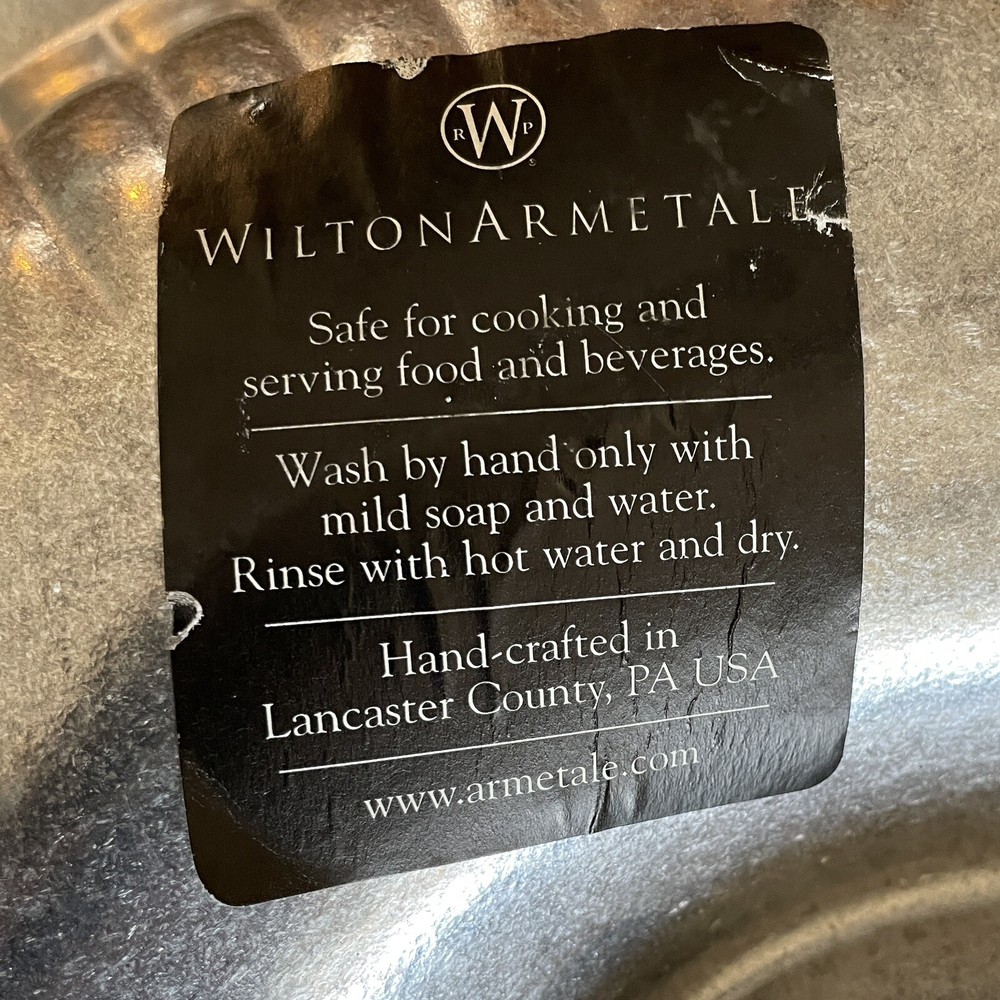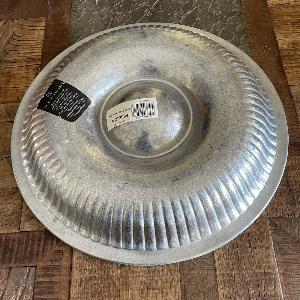 **Piece is new w/tags but does have two very tiny scratches - see last pic*** A long standing favorite, the Flutes and Pearls collection features classically sculpted parallel indentations and repeated raised beads; the combination makes for a sparkling effect Armetale metal is 100% recycled, food-safe, aluminum-based alloy metal, this piece will not rust, break, crack, or chip under normal usage - no need to polish Crafted from a solid piece of metal with no coating applied and helps keep hot foods stay hot longer, and cool foods stays cool longer Oven, stove, grill, refrigerator and freezer-safe. Hand wash only. Measures 15.5-inch long by 15.5-inch wide by 2-inch deep