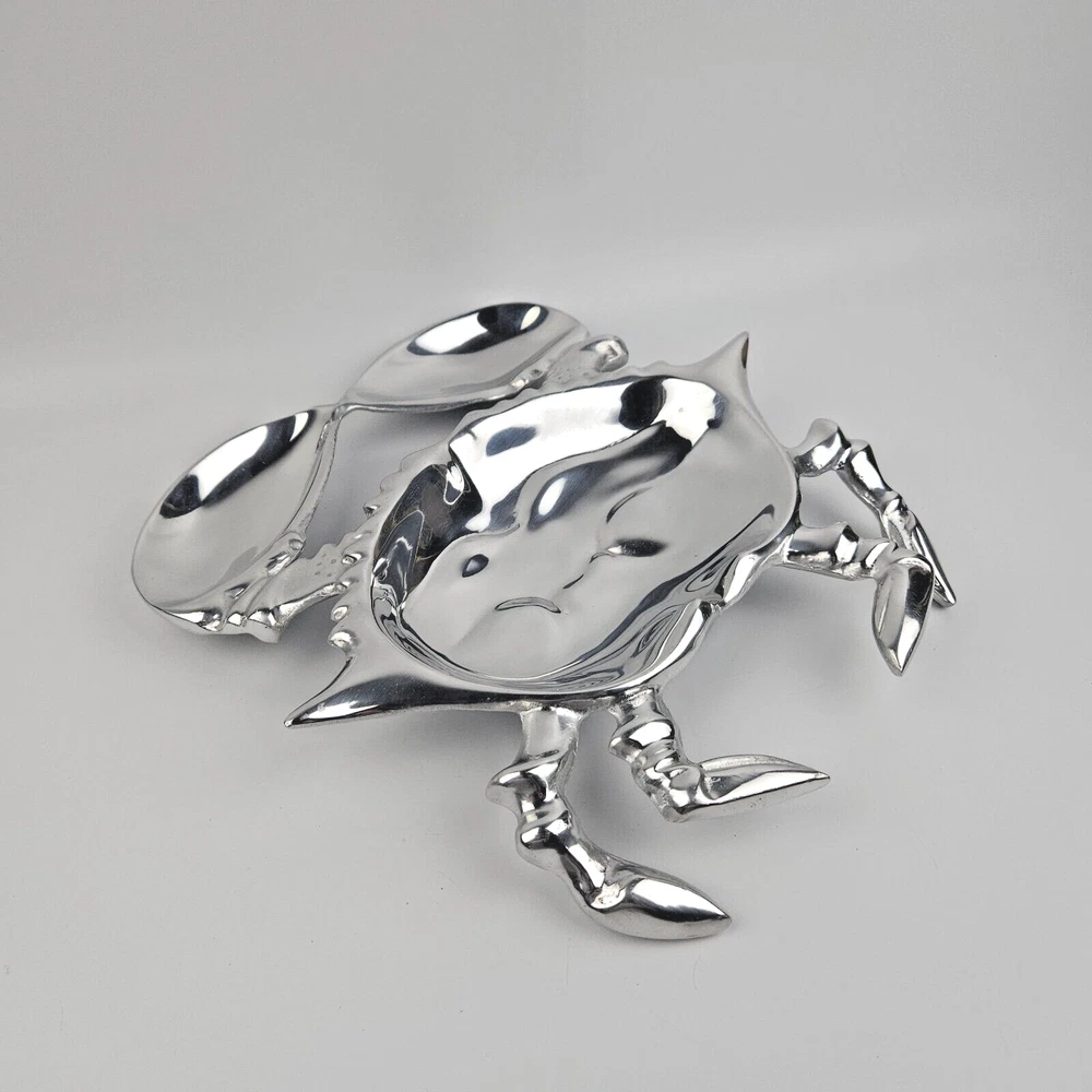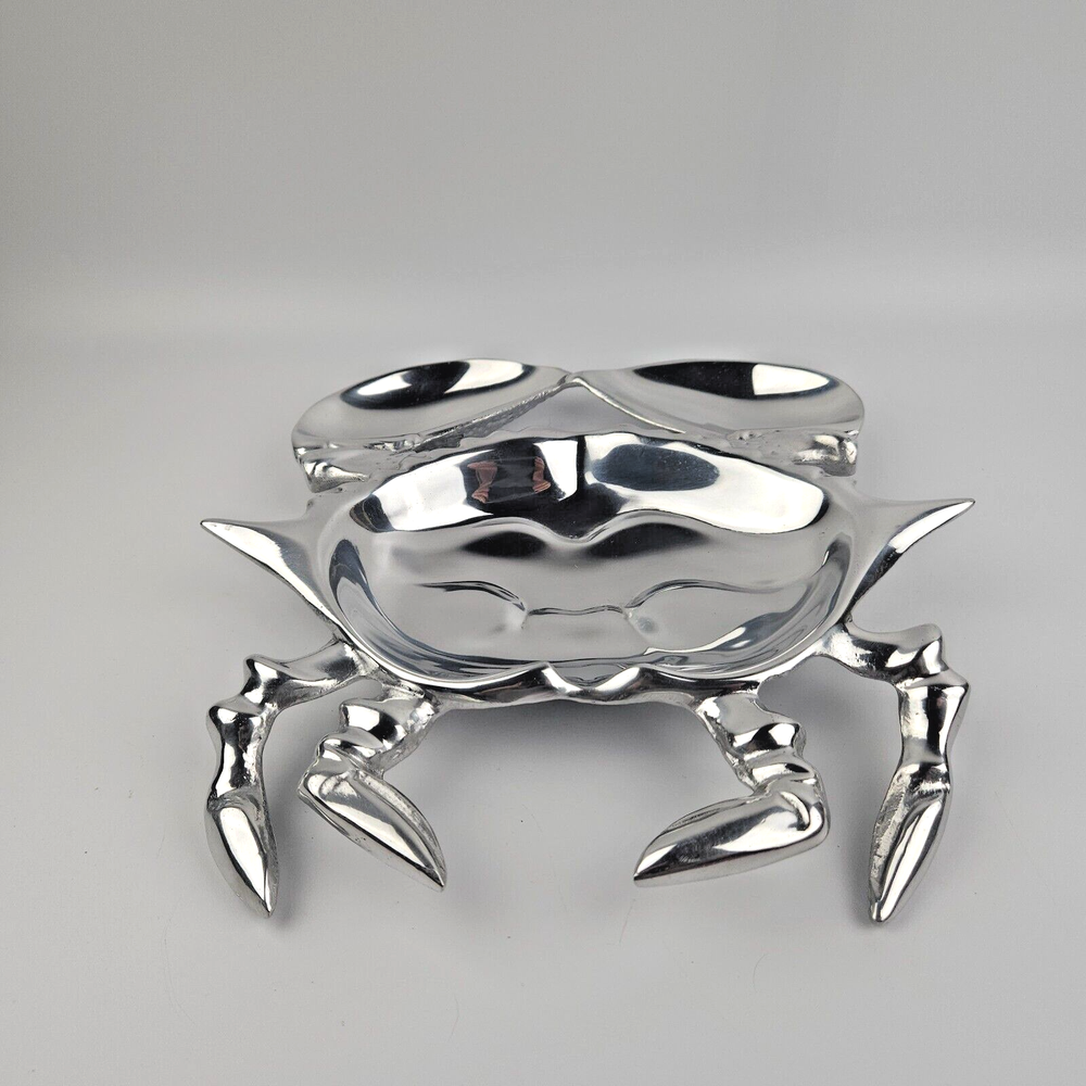 New Wilton Armetale Metal Silver Giant Crab Chip & Dip Divided Serving Dish 12"+ Aluminum-based alloy Hand wash only. Dimensions Approx.: Length:12.75 Inch Width:12.5 Inch Made in: China In Good New Condition. Aluminum-based alloy Hand wash only **Vintage preowned items may have light surface wear consistent with their age. **Please review reference photos closely as they are part of the condition. ** Item pictured is item you will receive unless noted. As always, carefully wrapped and fully insured. We appreciate your business and strive to provide excellent service to our customers. If you have a question about an item or experience a problem, please contact us so we can make it right. Thank you, Vintage Decor Store