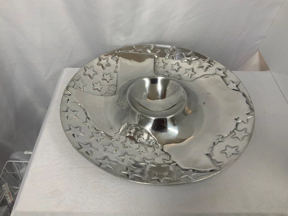 Great Condition Pewter Texas Lone Star CHIP & DIP Style Tray Serving Plater 15" Great Condition has 3 small discoloration spots from light use , has original finish still has beautiful shine . *** If you wash in DW it removes the shine Handwash only to maintain Beautiful look . The DW detergent damages the pewter finish . Thank you for choosing our listing . Please visit our EBay Store Heritage Variety click on button below. You Never know what other useful , unusual and rare things you will find to add to your Treasure collection. We add items nearly daily . Please follow our page to keep up with all our treasures so they could become yours and you want miss out. We are not offend if people make us offers that is why I allow it . There are things I have a little room and others I can’t, so if you see something your interested in please make a offer if you feel price needs adjustment. We try to be reasonable on our prices , they are based on condition and quality of item and expenses associated with selling a item online. Thank you again so much , Heritage Variety