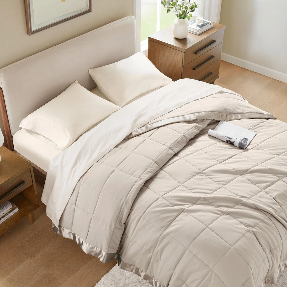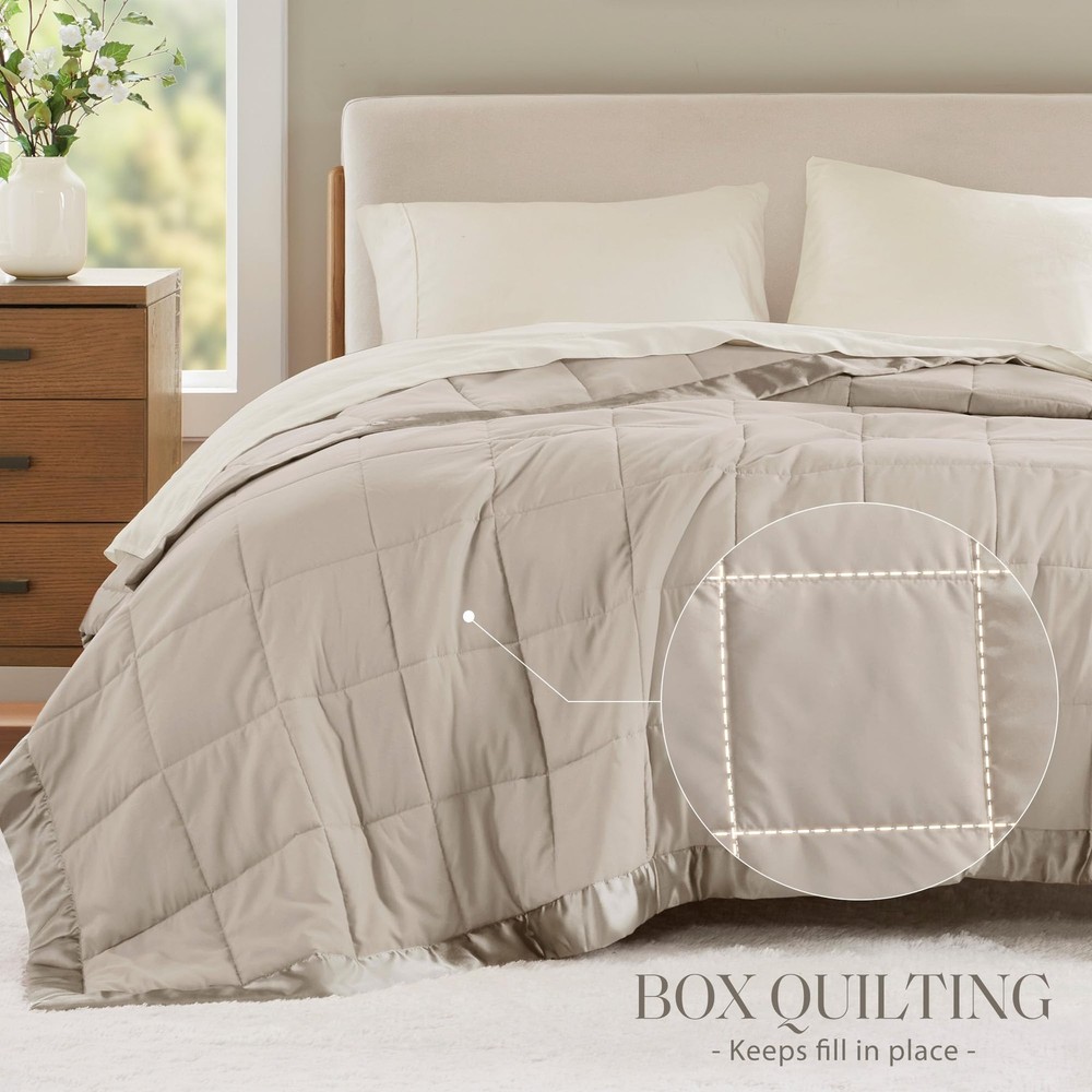 NEW & TRENDY - Search no further for your new cozy blanket, Windom microfiber blanket offers bold solid color complimenting the luxurious double sided box quilting design accented with satin binding. Brushed microfiber fabric offers a super soft and lofty cover to keep you warm and cozy, while still giving a lightweight and wrinkle resistant design BETTER SLEEP - We simply offer you a really soft and cozy high quality brushed microfiber cover. Our microfiber blanket features a 3M Scotchgard Moisture Management Treatment that wicks away moisture, keeping you warm and dry through the night. The treatment also helps most stains come out in the wash ALL SEASON - Our all season blanket offers a soft and lightweight material perfect Summer blanket and warm enough for Spring season. Collection aims to offer you a better quality sleeping experience. In the winter our blanket can be the perfect layering piece, adding a decorative element of soft texture for extra warmth and coziness during the cold season LIGHTWEIGHT AND ULTRA SOFT - perfect for hot sleepers. With the stain resistence function you don't need to worry about accidental spilling of fluid, like coffee or wine. You can enjoy a breakfast on bed on the weekend or a glass of wine before you go to sleep MAKE IT LAST - It will last if you maintain it by using machine wash cold on gentle cyle only, and tumble dry on low heat. And NO BLEACH. Commercial size front loading washer is recommended