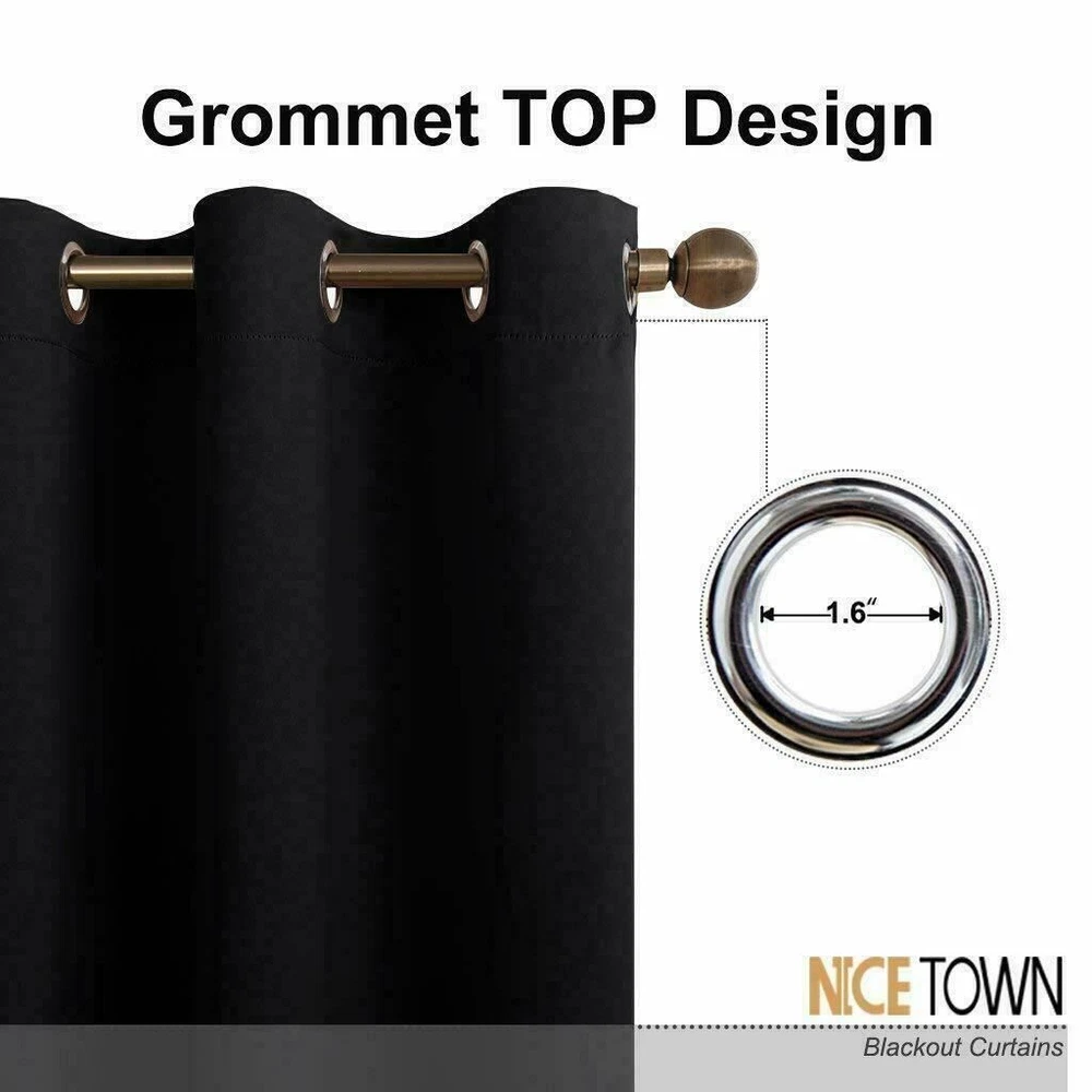 US Warehouse - FREE & FAST Shipping in USA Product Description: Polyester Imported AMAZING FABRIC: The blackout curtain's fabric is super soft and heavy innovative triple-weave polyester fabric. The same material back as of front makes it appear more elegant. The 14 sliver grommets top (inner diameter is 1.6-inch) adds a modern touch and easy hanging. MULTIPLE FUNCTIONAL: These extra wide curtains are wide enough to cover the sliding door perfectly. Besides, the curtain panel helps your patio door to block out most of the light, high performance on thermal insulated, noise-reducing, and privacy-protecting. ENERGY SMART: Triple weave blackout fabric balances room temperature by insulating against summer heat and winter chill, reducing air conditioning costs. Protect your furniture, floors, and artwork from the ravages of the sun, the Patio Door Drapes will pay for themselves off over time. WISE COMPATIBLE: Thread trimmed and wrinkle-free, all sets for you to put them up right away. Suitable perfectly for sliding doors, patio doors, and any large window. These wide curtains can be hung separately, or combine with NICETOWN sheer curtains. EASY CARE: Good-quality finishing will withstand years of use. Machine washable and Wash the water temperature below 86F. Mild detergent no bleaching. Low-temperature ironing. Don’t use sharp things scratching curtains. Thank You for Shopping!