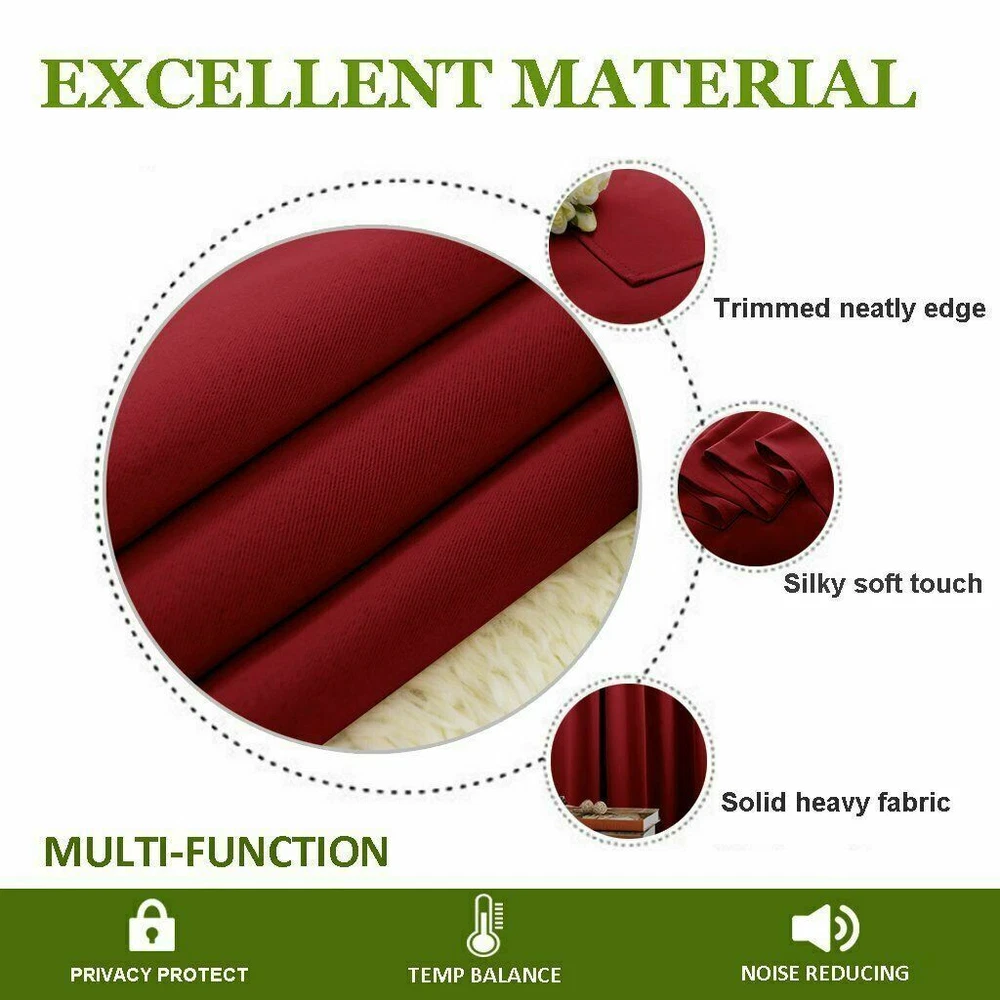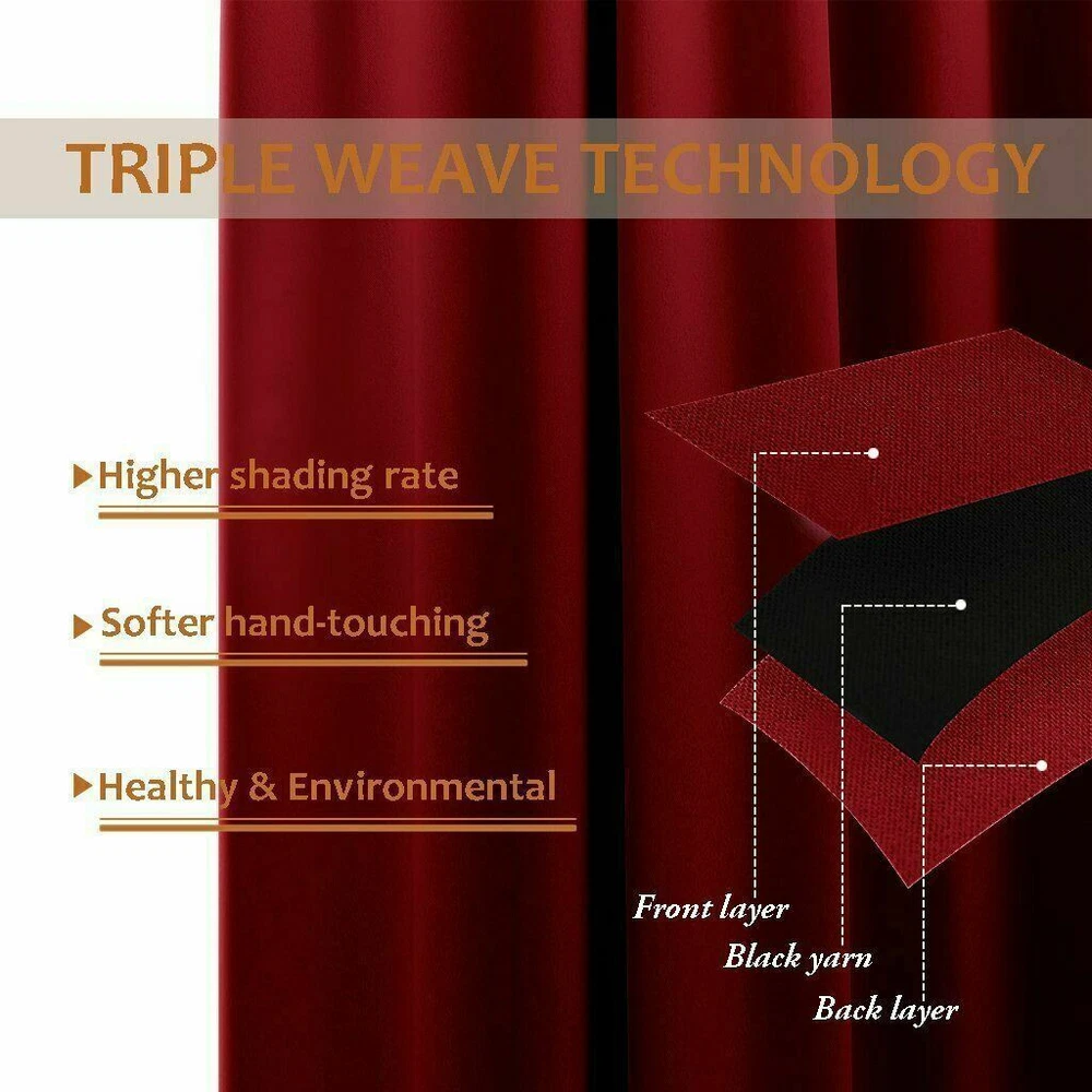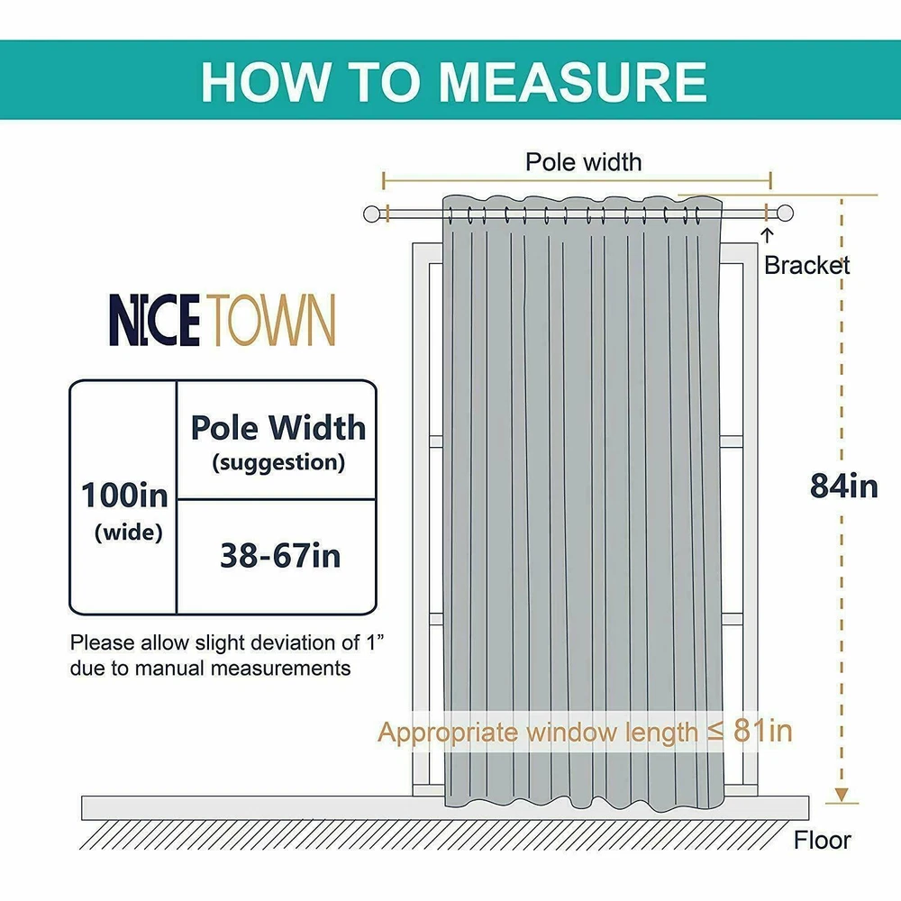 US Warehouse - FREE & FAST Shipping in USA Product Description: Polyester Imported AMAZING FABRIC: The blackout curtain's fabric is super soft and heavy innovative triple-weave polyester fabric. The same material back as of front makes it appear more elegant. The 14 sliver grommets top (inner diameter is 1.6-inch) adds a modern touch and easy hanging. MULTIPLE FUNCTIONAL: These extra wide curtains are wide enough to cover the sliding door perfectly. Besides, the curtain panel helps your patio door to block out most of the light, high performance on thermal insulated, noise-reducing, and privacy-protecting. ENERGY SMART: Triple weave blackout fabric balances room temperature by insulating against summer heat and winter chill, reducing air conditioning costs. Protect your furniture, floors, and artwork from the ravages of the sun, the Patio Door Drapes will pay for themselves off over time. WISE COMPATIBLE: Thread trimmed and wrinkle-free, all sets for you to put them up right away. Suitable perfectly for sliding doors, patio doors, and any large window. These wide curtains can be hung separately, or combine with NICETOWN sheer curtains. EASY CARE: Good-quality finishing will withstand years of use. Machine washable and Wash the water temperature below 86F. Mild detergent no bleaching. Low-temperature ironing. Don’t use sharp things scratching curtains. Thank You for Shopping!