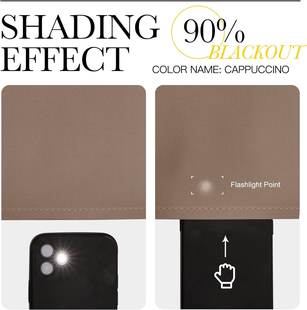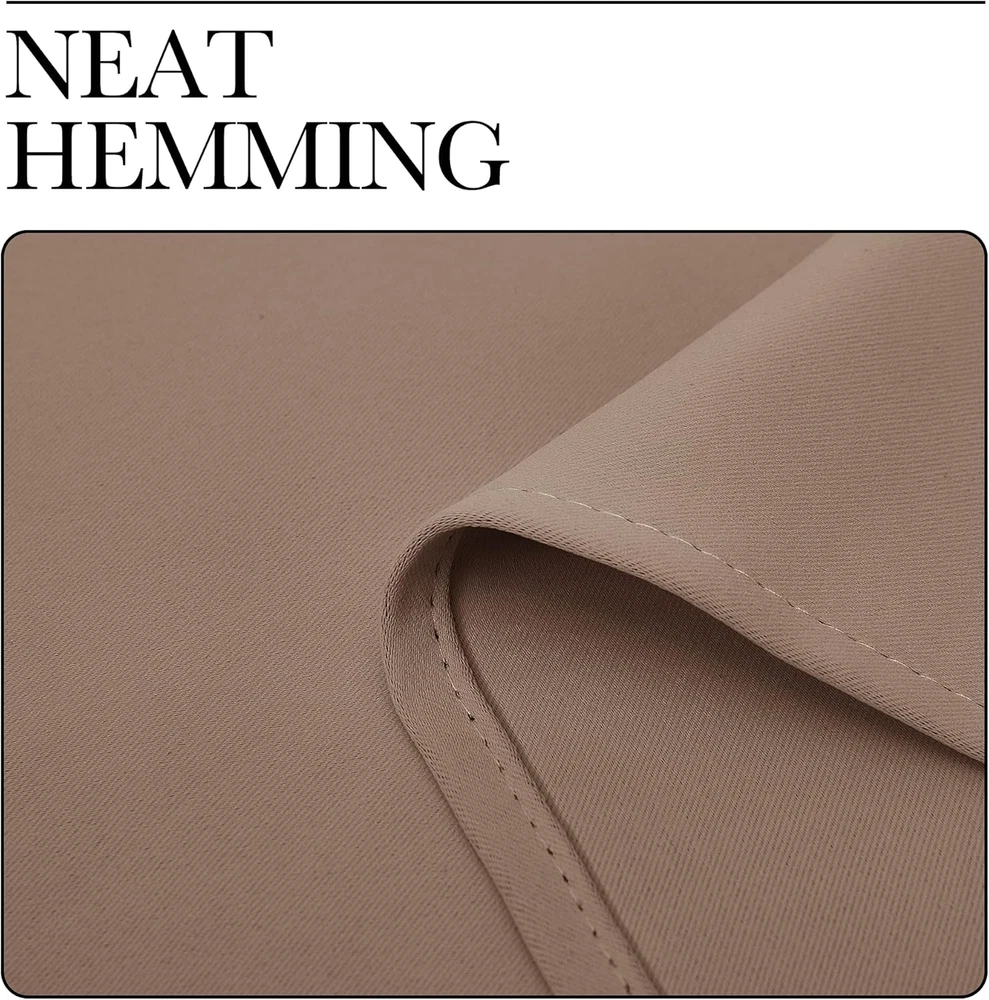 Polyester READY MADE: Set includes 2 BLACKOUT CURTAINS PANELS of 42" wide x 63" length with 6 grommets top each. Quality fabric without liner feels soft and heavy. SERVE WELL: Curtains impede 85%-99% light and UV rays(Dark color curtains work well). Noise-reducing, better TV viewing thanks to the innovative triple weave technology. ENERGY SMART: Triple weave blackout fabric balances room temperature by insulating against summer heat and winter chill. Protect your furniture, floors, and artwork from the ravages of the sun, the drapes will pay for themselves off over time. GOOD TO GO: Thread trimmed and wrinkle-free, ring (1.6-inch inner diameter) fits easily with standard curtain rods. All sets for you to put them up right away. EASY TO MAINTAIN: NICETOWN blackout curtains are made to last. Machine washable in cold water, tumble dry. Quick ironing or steam clean when needed. Visiting the NICETOWN store, find out your favorite curtains. Product Description HEAVY-DUTY SILVER RING Suitable for most curtain rods, and easily for hanging and sliding. HIGH DENSITY SUTURE The curtain fabric looks more exquisite and worthwhile. SAME FABRIC FRONT AND BACK The same fabric for both sides makes the curtain a simple style. TRIPLE WEAVE TECHNOLOGY Provide you with a perfect shading performance of about 50%-99% Blackout. DO WELL IN THERMAL INSULATED After insulating with the curtain, the temperature drops a lot. 1 SILVER GROMMET 2 HIGH DENSITY SUTURE 3 FRONT AND BACK 4 TRIPLE WEAVE FABRIC 5 THERMAL INSULATED TYPES OF CURTAIN TOP FOR NICETOWN BLACKOUT CURTAIN GROMMET TOP Make curtain orderly, easy to install and slide, so that let the room elegant. Recommended with no greater than a 1.6-inch rod for maximum movement. ROD POCKET Make some small pleats that give a feeling of cozy and classic. Recommended with no greater than a 1.7-inch rod for maximum movement. BACK TAB Give 3 options to hang curtains which is a perfect choice for window decoration. Recommended with no greater than a 1.7-inch rod for maximum movement. TOP TAB Creates casual elegance for your house, which makes the curtains easy to install and slide. Recommended with no greater than a 1.9-inch rod for maximum movement. TWIST TAB Not only creates rich, deep folds for a professional look, but also makes this panel easy to hang, open and close. Recommended with no greater than a 1.9-inch rod for maximum movement. PINCH PLEATED More gathered than other headings and have permanent sewn-in pleats for a more luxurious. Recommended with no greater than a 1.9-inch rod for maximum movement. CLASSIC AND POPULAR COLOR RECOMMENDATIONS COLOR SHADING DISPLAY THE COLOR OF THE ACTUAL ITEM MAY VARY SLIGHTLY IN DIFFERENT ENVIRONMENT The video showcases the product in use. The video guides you through product setup. The video compares multiple products. The video shows the product being unpacked. The video showcases the product in use. The video guides you through product setup. The video compares multiple products. The video shows the product being unpacked.