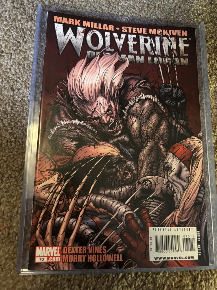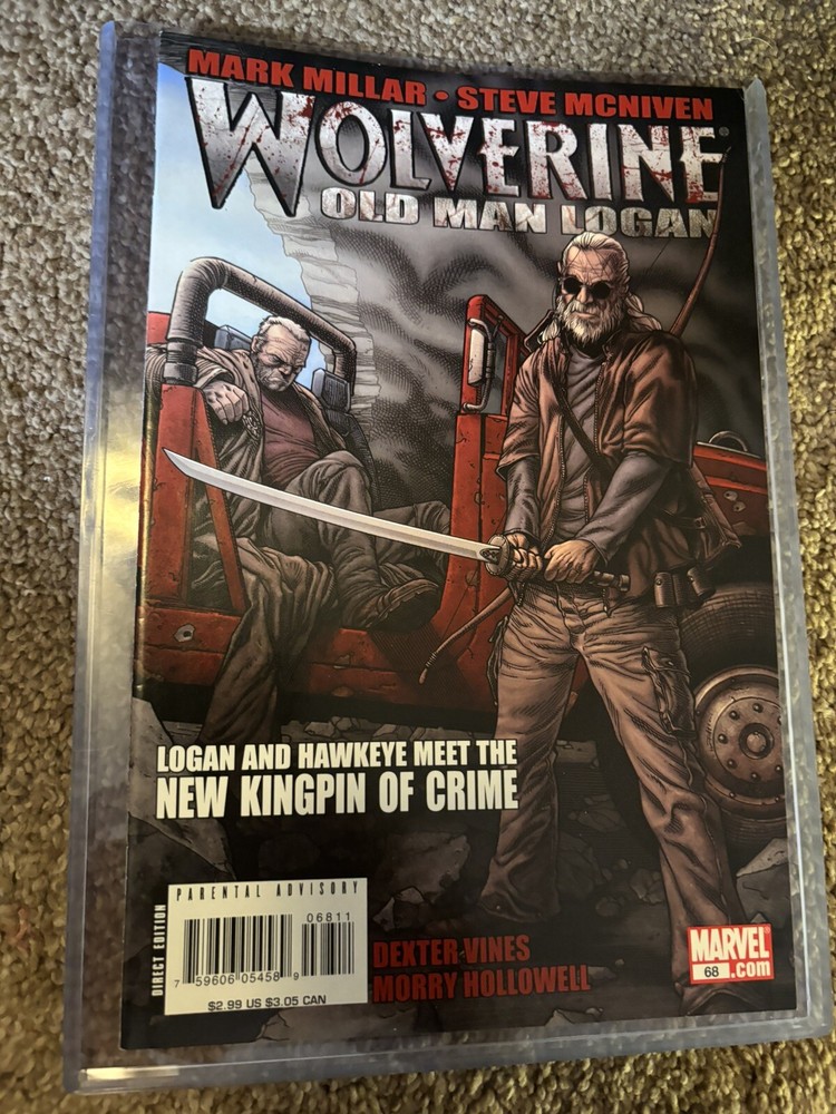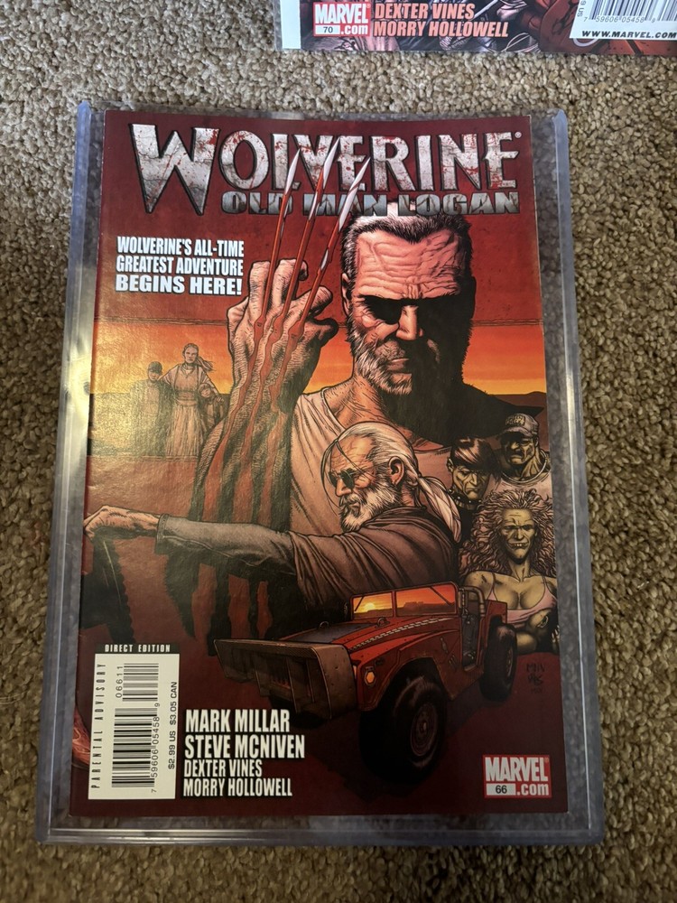 This lot includes three issues of Wolverine #66, 68, and 70, featuring the Old Man Logan storyline written by Mark Millar. The comics are in NM or better condition and include variant covers. The series title is Wolverine and the story title is Old Man Logan. The comics are from the Marvel (MCU) universe and were published by Marvel in 2008. The superhero team includes Deadpool, X-Force, and Uncanny X-Men. The comics are single issue format and are in English language. The artist/writer is Mark Millar and the genre is superheroes. This lot falls under the categories of Collectibles, Comic Books & Memorabilia, Comics, and Comics & Graphic Novels.