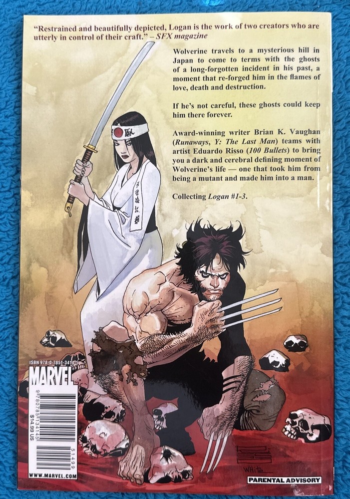 This is a thrilling edition of Wolverine: Logan TPB, featuring a star-studded creative team including Dean White, Brian K. Vaughan, and Eduardo Risso. The graphic novel follows the adventures of Wolverine, Deadpool, and the X-Men as they battle it out in the modern age of comics. The story is centered around Atsuko (Death), Lt. Ethan Warren, and Wolverine (Logan), and is a must-read for fans of the superhero genre. The cover art by Dean White and Eduardo Risso is just as impressive as the interior pages, making this a true collector's item. Whether you're a fan of Marvel Comics or simply enjoy reading graphic novels, Wolverine: Logan TPB is a fantastic addition to any collection. Actual item pictured