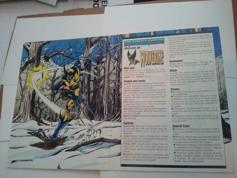 Awesome rare Wolverine poster with info on Logan's origin and powers! Wolverine (James Howlett aka Logan) is a superhero appearing in comics published by Marvel, often in association w/ X-Men. He is a mutant with animal-keen senses, enhanced physical ca The following listings are for comic book and/or movie fans looking to decorate their rooms/offices/lockers/dorms with low cost art and photos! Maybe you love the character...maybe you love the artist, maybe you love the storyline...whatever it is, why pay $100's or even $1000's? These make an excellent gift! Imagine your kids face when they come home from school and see this on their wall! If you have any questions please be sure to ask BEFORE purchasing! Can't find what you're looking for? Search my titles AND description by clicking here ! You'll notice your search bar now says "Search only this store"...quite a powerful tool! Please check my other listings HERE before checking out...combine your order and save on shipping! Please add me to your favorite sellers list as I have new listings on the way! Thanks for viewing! Please note shipping is full price plus $2 for each additional item. PLEASE TAKE A MOMENT AND CHECK MY OTHER LISTINGS! If you don't see it- ask! It MAY be in stock! We'll be glad to put a listing up for you! Respond to messages in 24 hours or less! To see more POSTERS ---> CLICK HERE!!! To see more WOLVERINE ---> CLICK HERE!!! To see more DEADPOOL ---> CLICK HERE!!!