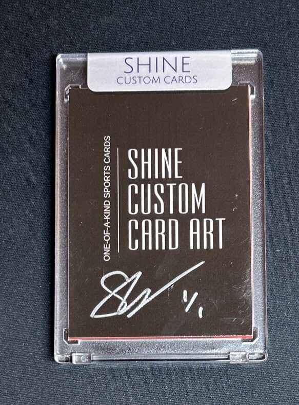 This card was created by SHINE Cards. It includes pieces from Panini and DC/Marvel Cards. This collectible is unique and the only of its kind to be created by SHINE Cards...