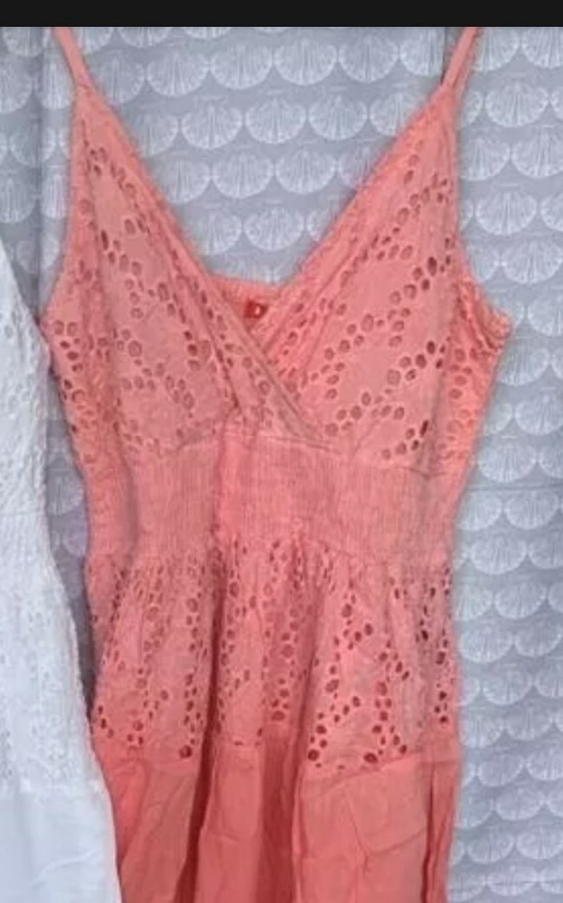 Women Ombre Dip Dye Coral Eyelet Lace Dress US L SIZE vneck summer sale. Condition is "New with tags". Shipped with USPS First Class....