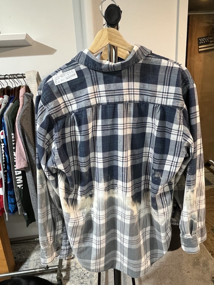 Hand selected flannels that are pre loved Size large David Taylor tag 22w 26L 27 L in the back I hand dip flannels , all shirts are not the same ....