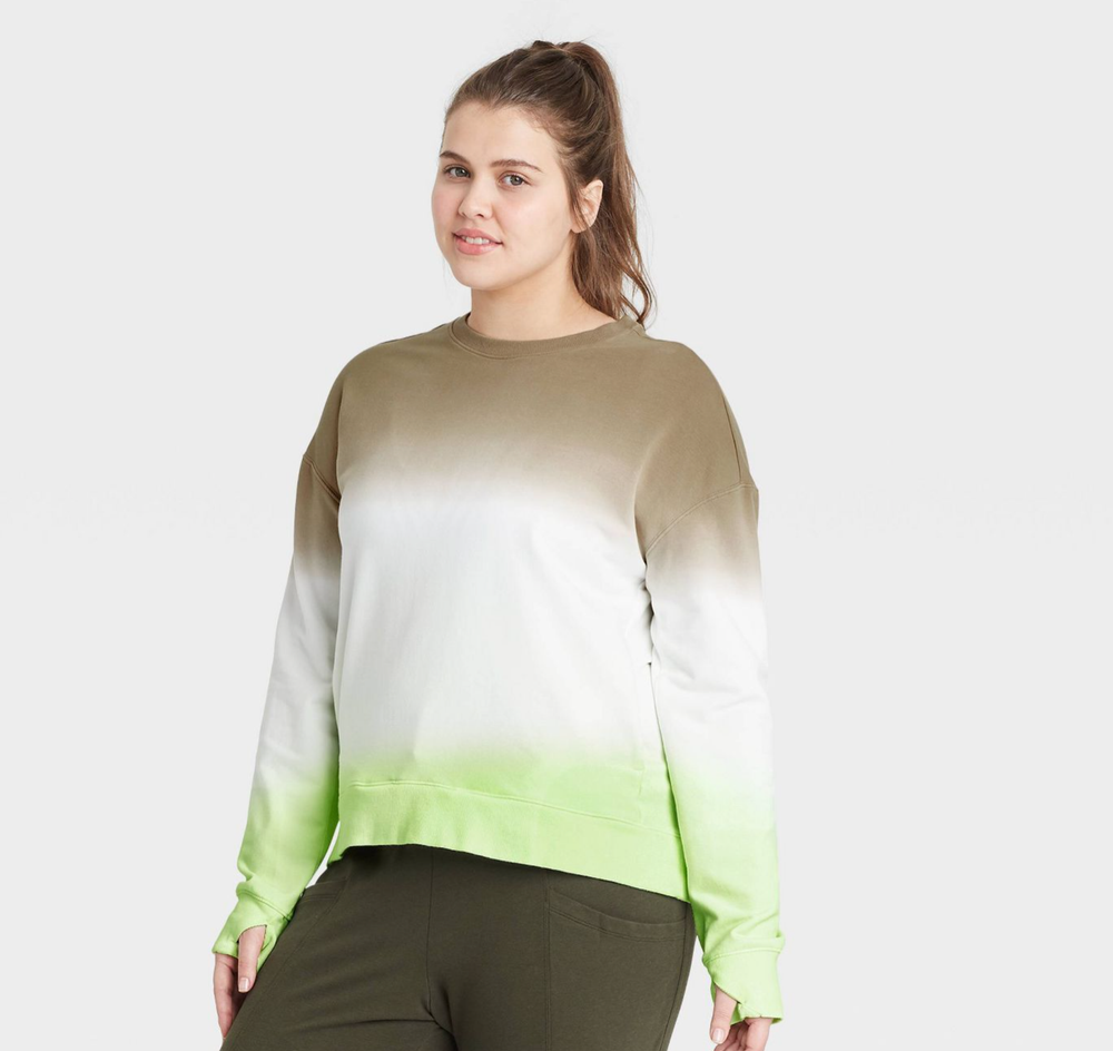 Women's XL Olive Mint Dip Dye Crew Neck Sweatshirt with Thumbholes - All In Motion