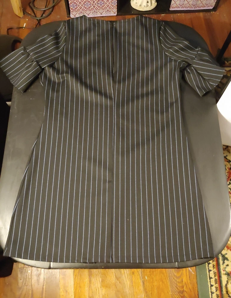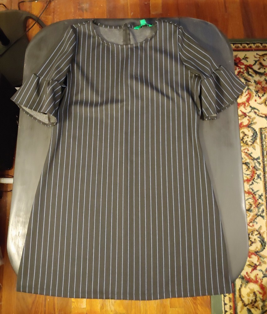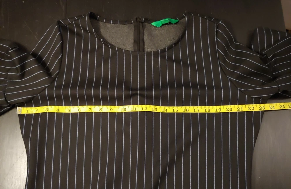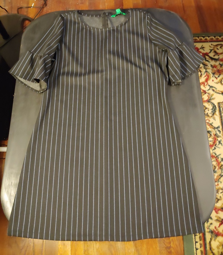 Women's Dip Black & Blue Striped Dress, XL Material: 85% Polyester 10% Rayon 5% Spandex Approximate Measurements (Laying flat): Length: 37" Chest: 23.5" Smoke-free and pet-free home