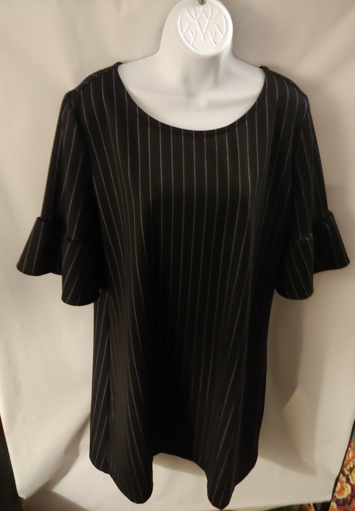 Women's Dip Black & Blue Striped Dress, XL Material: 85% Polyester 10% Rayon 5% Spandex Approximate Measurements (Laying flat): Length: 37" Chest: 23.5" Smoke-free and pet-free home...