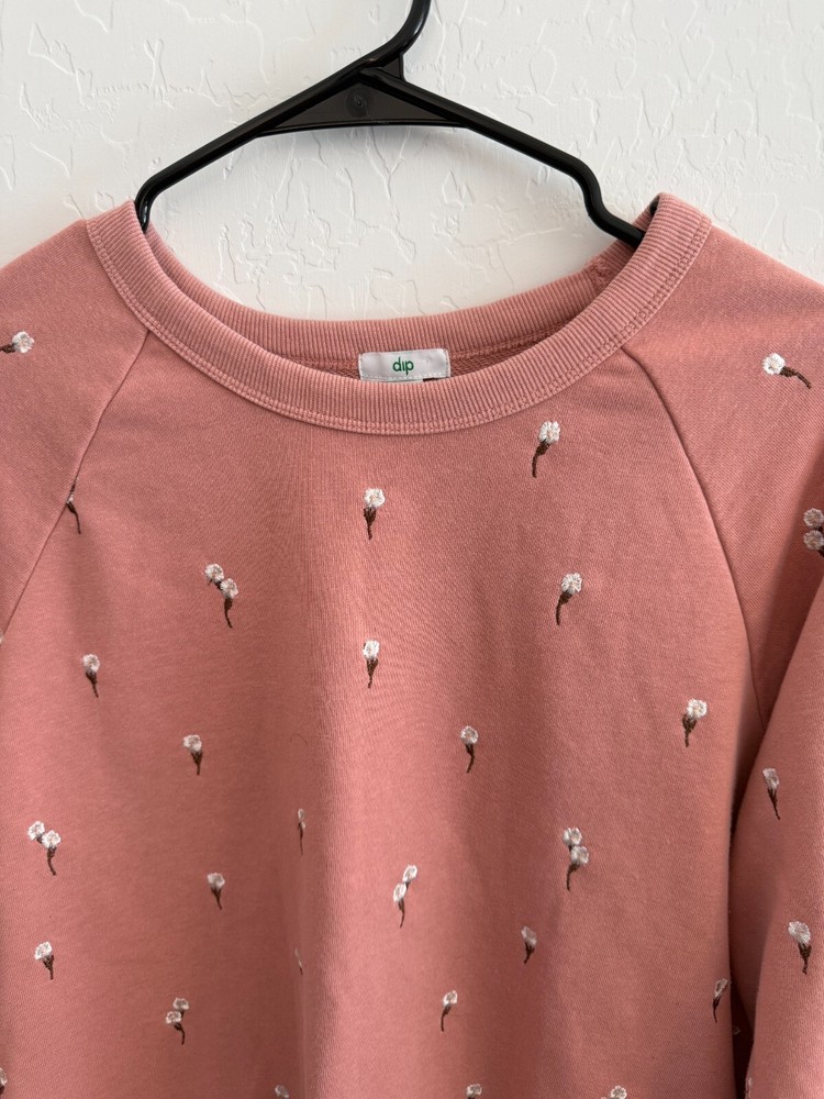 Absolutely love this sweatshirt! The floral embroidery is so pretty and well-detailed, and the fabric is super soft and cozy. Fits perfectly (true to size) and the pink color is gorgeous—not too bright, just the right shade. Great for casual wear or dressing up slightly. Highly recommend!