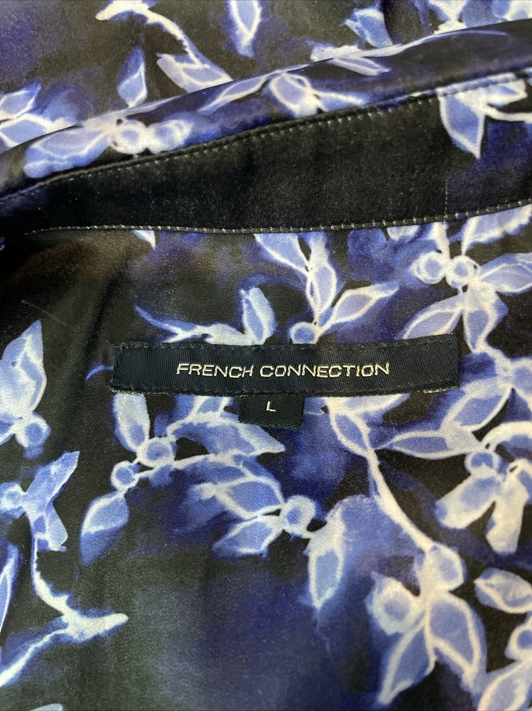 Womens French Connection Large Blue Satin Floral Dip Hem Casual Shirt Blouse Measures 27” armpit to armpit and 26/30” long Good used condition...