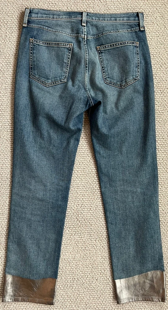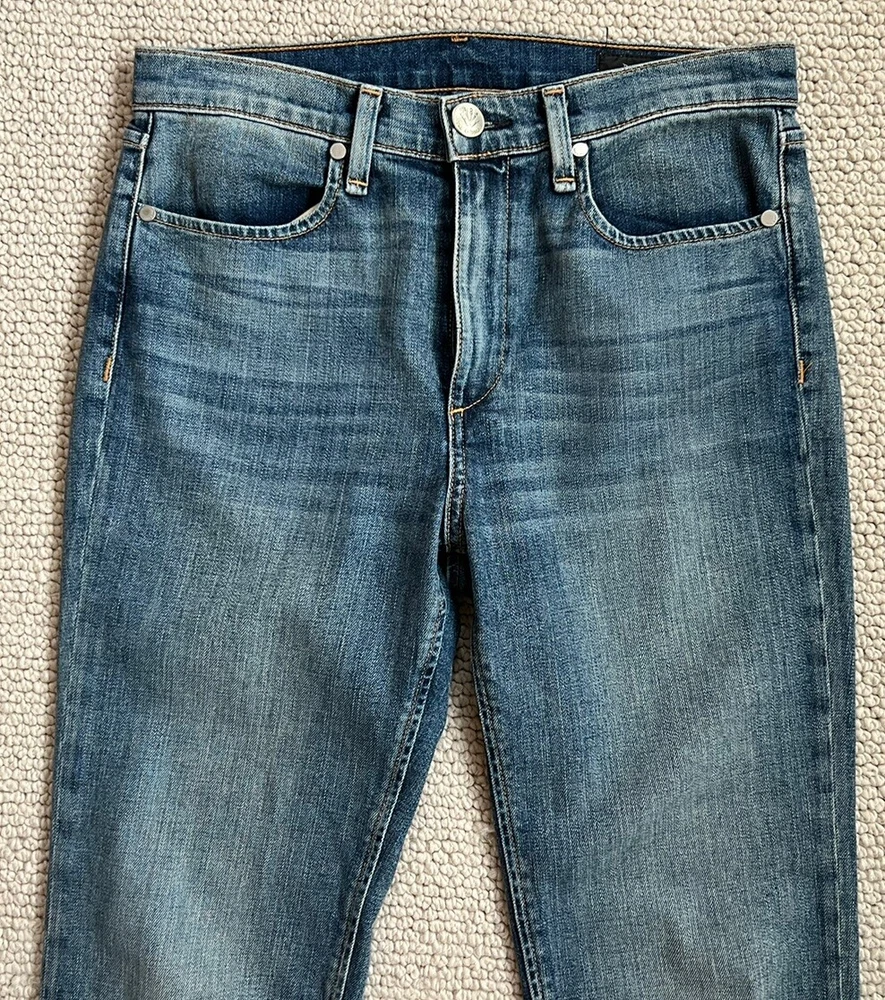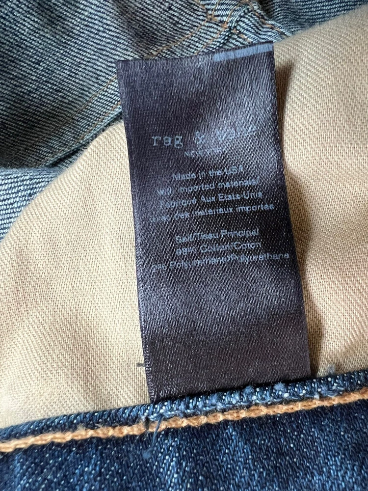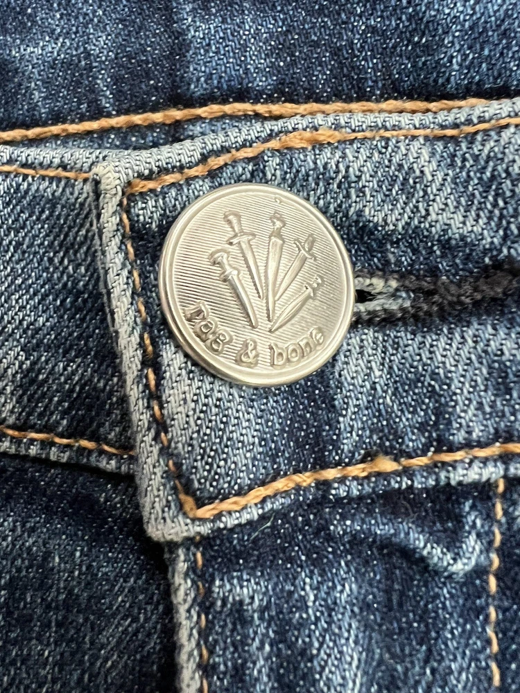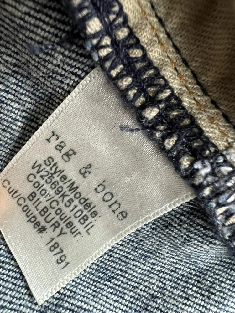 Rag & Bone Dip Dyed Hem Jeans 100% Authentic CONDITION: EUC STYLE: W2569K510BIL Slim high-rise ankle jeans with metallic hems. Belt loops. Front zip fly with button closure. Two front scoop pockets. Two back patch pockets. COLOR: Bilbury SIZE: 27 98% cotton/ 2% polyurethane inseam: approximately 27" rise: approximately 10.5" waist (laying flat): approximately 15" leg opening (laying flat): approximately 6.5" Please email me if you have any questions before you bid. I want to make sure you are confident about your bidding and buying. All sales are final. In rare circumstances, I will allow a return less shipping and handling if the item was grossly misrepresented. Return must be approved and shipping will be at your expense. I only ship to the ebay registered address. If you need more pictures/ measurements let me know and I'll be happy to get those for you. My items are from retail stores and have been lightly handled by the store during the course of the daily retail business. I try to describe any imperfections as accurately as possible, however, I am human and can make a mistake. Please contact me if you have any concerns when you receive the item and I will take care of them ASAP! My home is clean, smoke free, and pet free. Last but not least, please leave positive feedback if you feel the transaction went well and I will gladly do the same! Thank you again! Happy bidding!