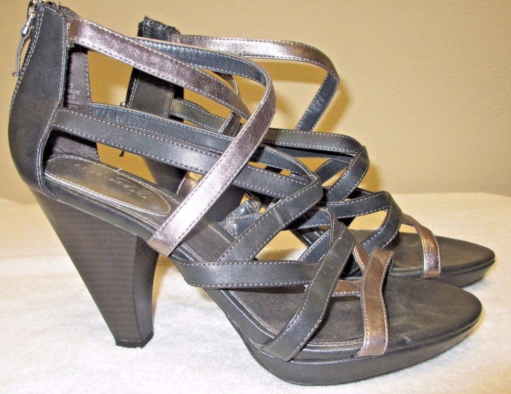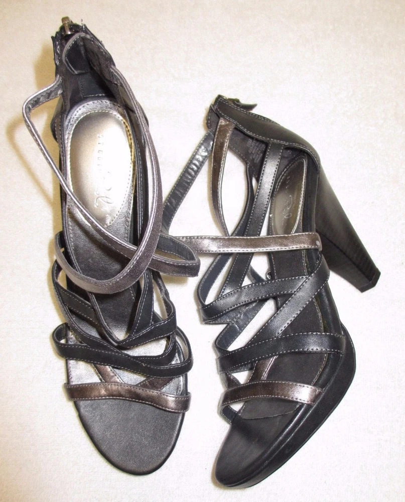 Women's Studio Paolo Strappy Sandals Gray Zip Back Cone Shaped Heels Sz 10M Heel Height: 4.5" Excellent pre-owned condition! Worn 2 times. Smoke/Pet free home. Thank you for shopping with me. Feel free to ask questions. Please check out my other listings.