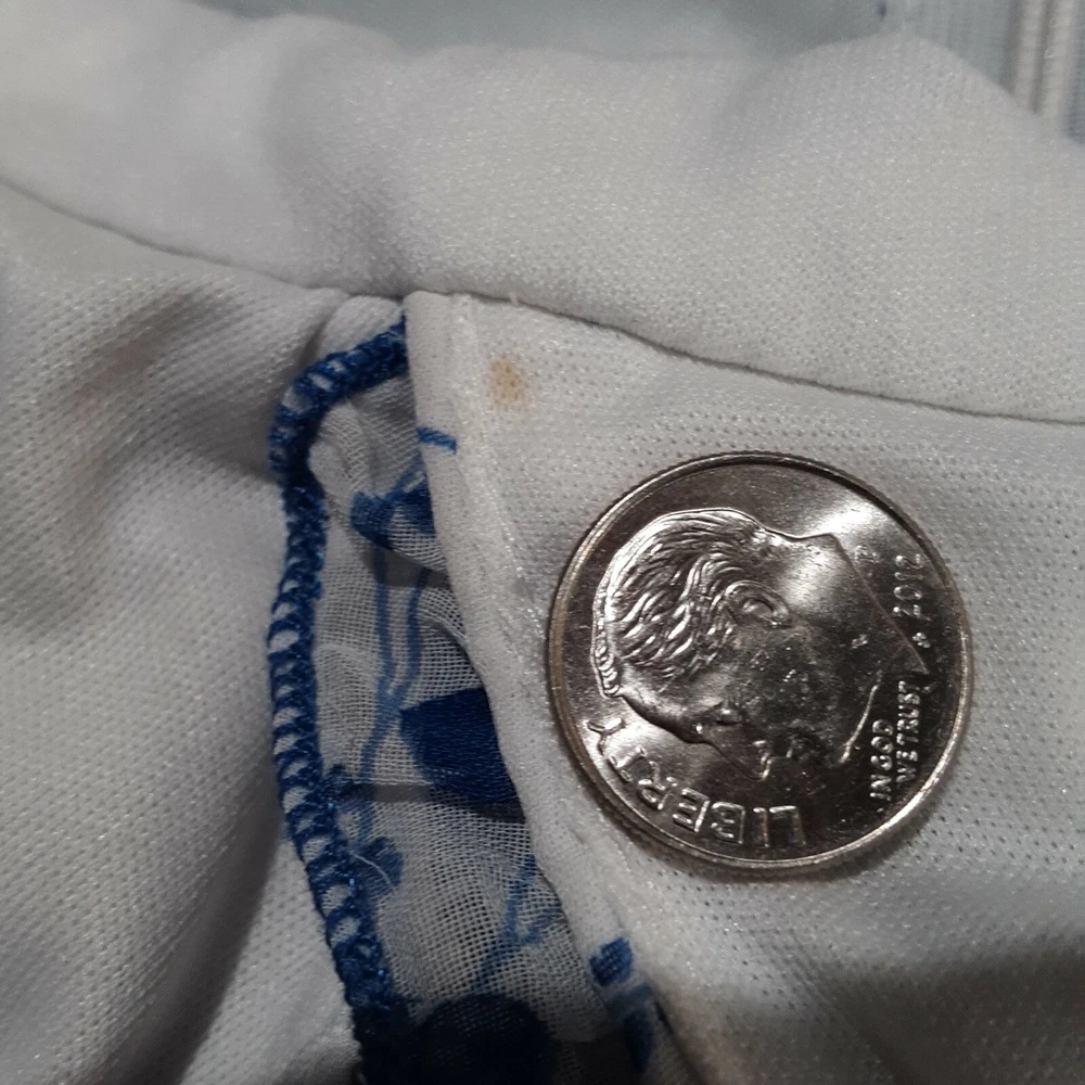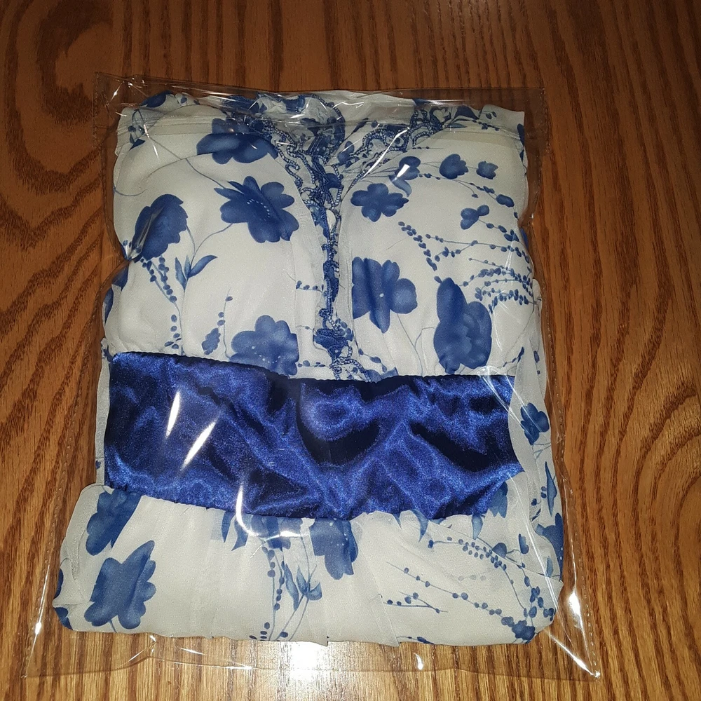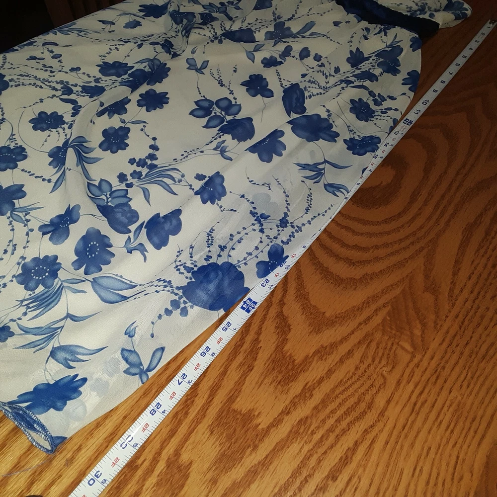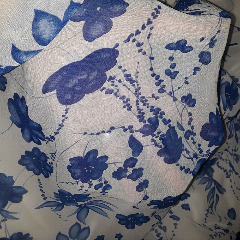 Women's Studio Y Sleeveless A Line Dress 7/8 White Blue Floral Print Sweetheart. In very good, gently used condition. Beautiful dress. Very sheer top layer (Picture 3) No rips, tear or holes. Has small stain on inside of top, (Picture 10) & small spot on ribbon (Picture 11) ****FROM A SMOKE FREE HOME**** Ships via USPS First Class Mail Packaged up and ready to go.